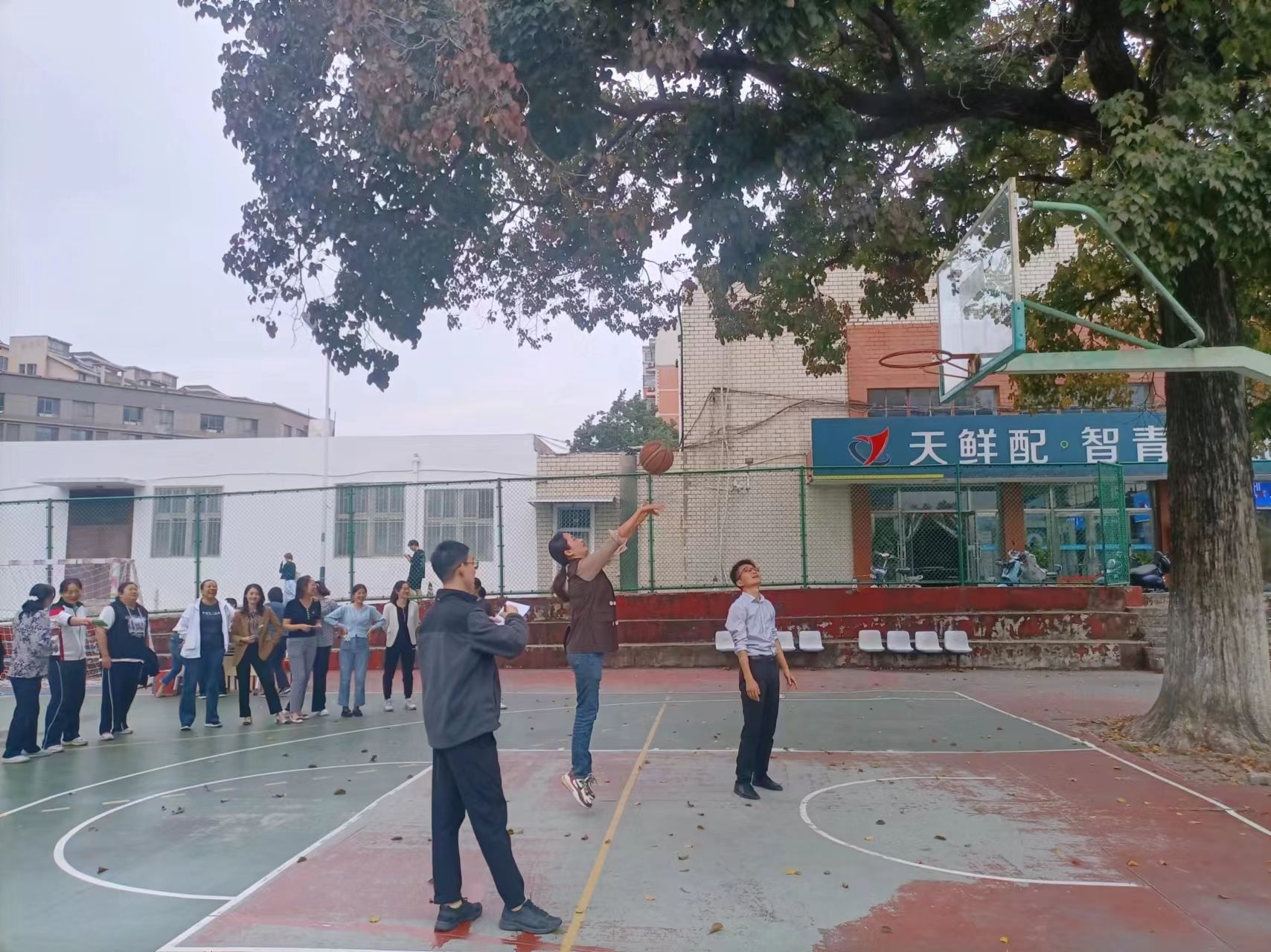 下午三点半,参赛人员分为男教职工组和女教职工组,分别在两个场地同时进行投篮比赛。