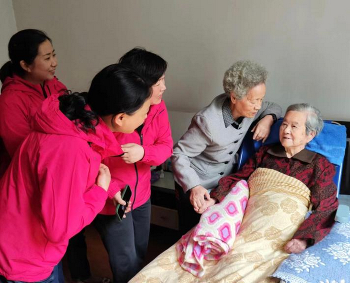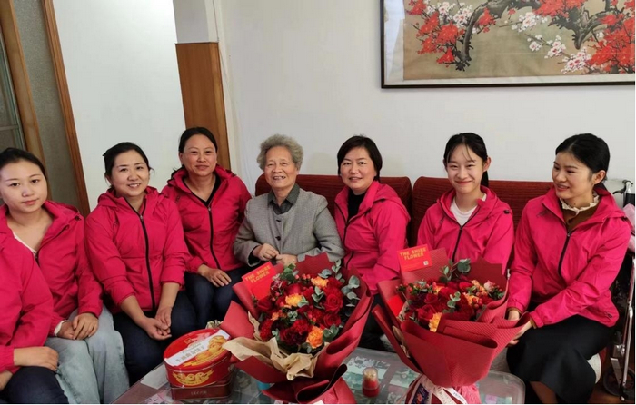 煦暖金秋,情满重阳。时值重阳佳节,为弘扬中华民族“爱老、敬老、尊老”的传统美德,表达对老前辈的感激与敬意,10月25日下午,在党支部书记尹紫昕、支委李晓梅的带领下,安农大幼儿园部分党、团员老师带着全园师幼的深情厚谊,前往看望97岁高龄的幼儿园第一任园长刘千红老师和83岁高龄的第二任园长李瑛老师。