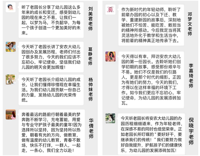 同忆弦歌不辍,共温芳华待灼,安农大幼儿园全体教职工定将初心不忘,赓续前行!也衷心祝福所有退休教师春生夏明朗,秋祺冬安康,欢愉且胜意,万事皆美好,岁月永远年轻,生命永远精彩!(作者:倪晓宇;一审:李晓梅;二审:尹紫昕 三审:葛红)