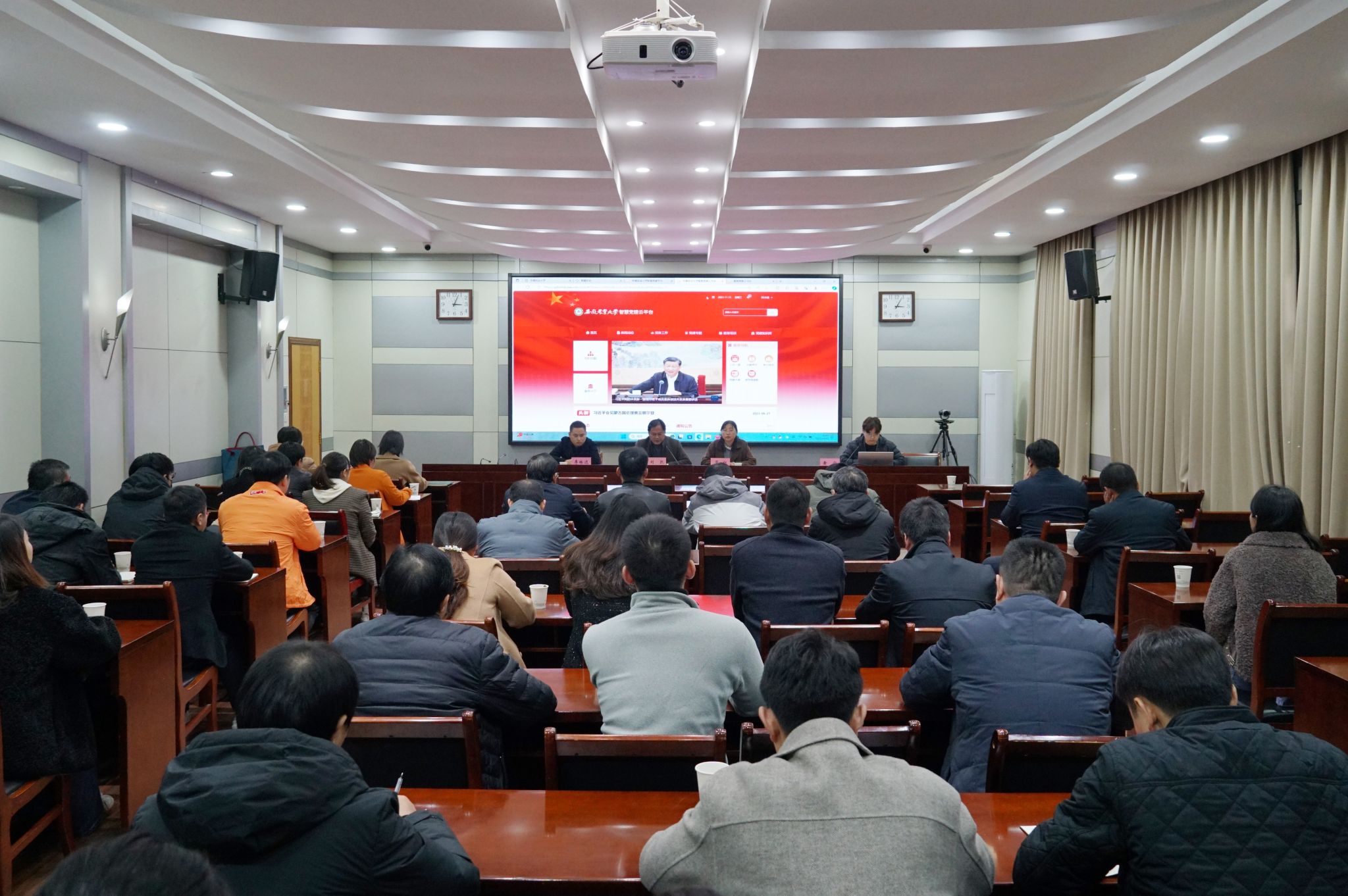 会上,刘凯向全体参会人员介绍了“智慧党建”项目建设的基本情况。他指出,该项目是2021年10月机关党委申报的书记项目,建设期2年,旨在实现“党建工作效率最大化、报送材料快速化、基础数据标准化、资源信息共享化和日常管理规范化、科学化”的目标。在组织部的指导下,在校财务处、国资处的大力支持下,“智慧党建”项目终于落地了。“智慧党建”是“互联网+党建”的有机结合,建成后将实现“线上互动交流”与“线下服务联动”一体化,各支部试运行后,将逐步实现机关党建工作线上办公绿色、高效、智能化。