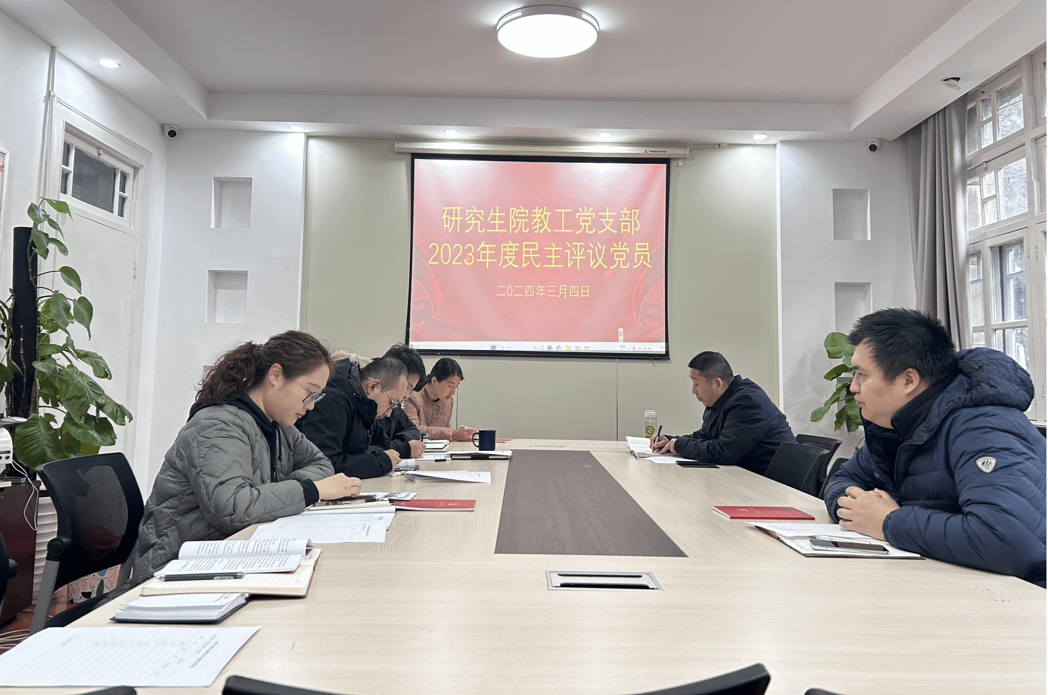 为贯彻落实全面从严治党要求,强化党员党性修养,增强党组织凝聚力和战斗力,3月4日上午,研究生院教工党支部召开党员大会,开展2023年度民主评议党员活动,支部全体在职党员参加。