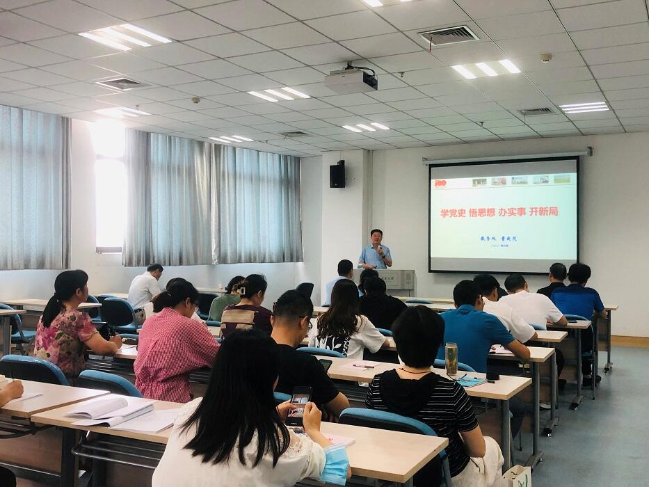 6月9日下午,图书馆、档案馆党支部联合教务处党支部在图书馆610多媒体教室召开党员大会。机关党委委员、教务处处长曹成茂做了题为《学党史 悟思想 办实事 开新局》的专题党课,会议由图书馆党支部书记吴永辉主持。