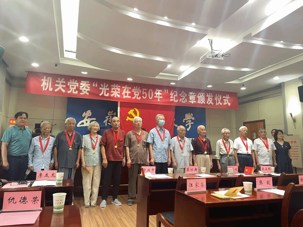 在举国上下喜迎建党100周年之际,机关党委于6月28日下午在校第二会议室隆重举办“光荣在党50年”纪念章颁发仪式。机关党委书记刘凯、各支部党龄50年以上老党员代表、2021年发展的新党员以及各支部党员代表等50余人参加了仪式。会议由机关党委副书记吴冬梅同志主持。