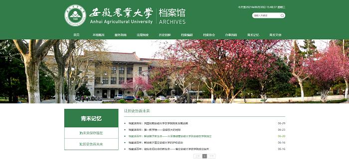档案馆牢牢把握“档案工作姓党”的政治属性,在红色资源开发利用上出实招,精准选题、超前谋划,努力建设“青禾文创”“青禾记忆”栏目,打造“校史育人”文化品牌。对馆藏历史文书档案进行整理和数字化,在服务党史学习教育中贡献档案力量。立足自身职能,传承红色文化,组织撰写系列文章:诞生在旧社会的新生命——省立安徽大学农学院成立始末、解放前夕国立安徽大学护校运动、解放赋予新生命——从军事接管安徽大学到安徽农学院独立、民国时期安徽大学农学院院系的设置与发展、第一教学楼——安徽农大的地标,全面宣传档案里的红色故事、普及校史知识,大力营造庆祝党的百年华诞的浓厚氛围。(刘社文 通讯员:邱艳)