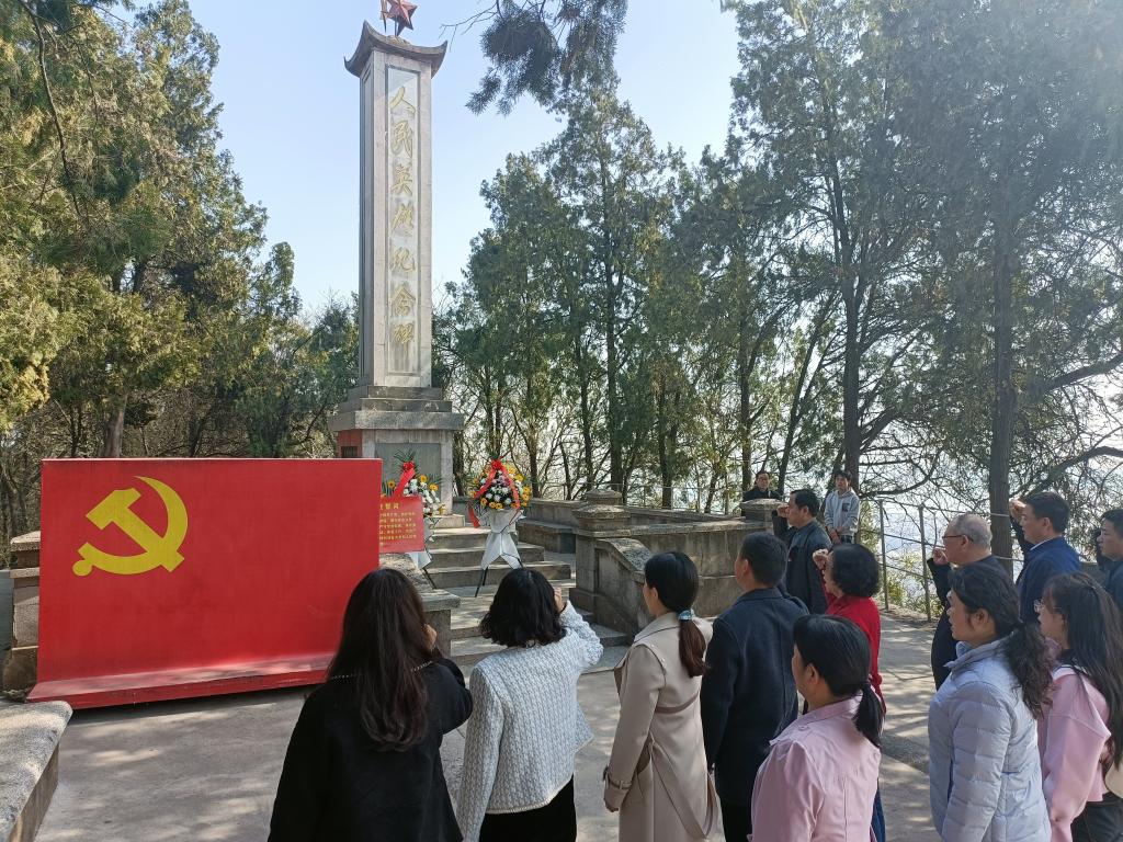 在庄严肃穆的烈士纪念碑前,全体党员向革命烈士墓碑敬献鲜花,肃立鞠躬。面对烈士英魂和鲜红党旗,全体党员怀着无比敬仰之情,高举右手重温入党誓词。宣誓完毕,大家缓步环绕纪念碑,近距离瞻仰碑文,深切缅怀为民族独立、人民解放、国家富强、人民幸福英勇献身的革命先烈,深切表达对革命先烈的崇敬和追思。随后,全体党员还参观了革命烈士纪念馆,仔细参观纪念馆里一幅幅珍贵的图片、一段段详实的文字、一件件文物资料,认真聆听工作人员解说,详细了解了朱慕萍、胡叶桃等烈士画像和英雄事迹。