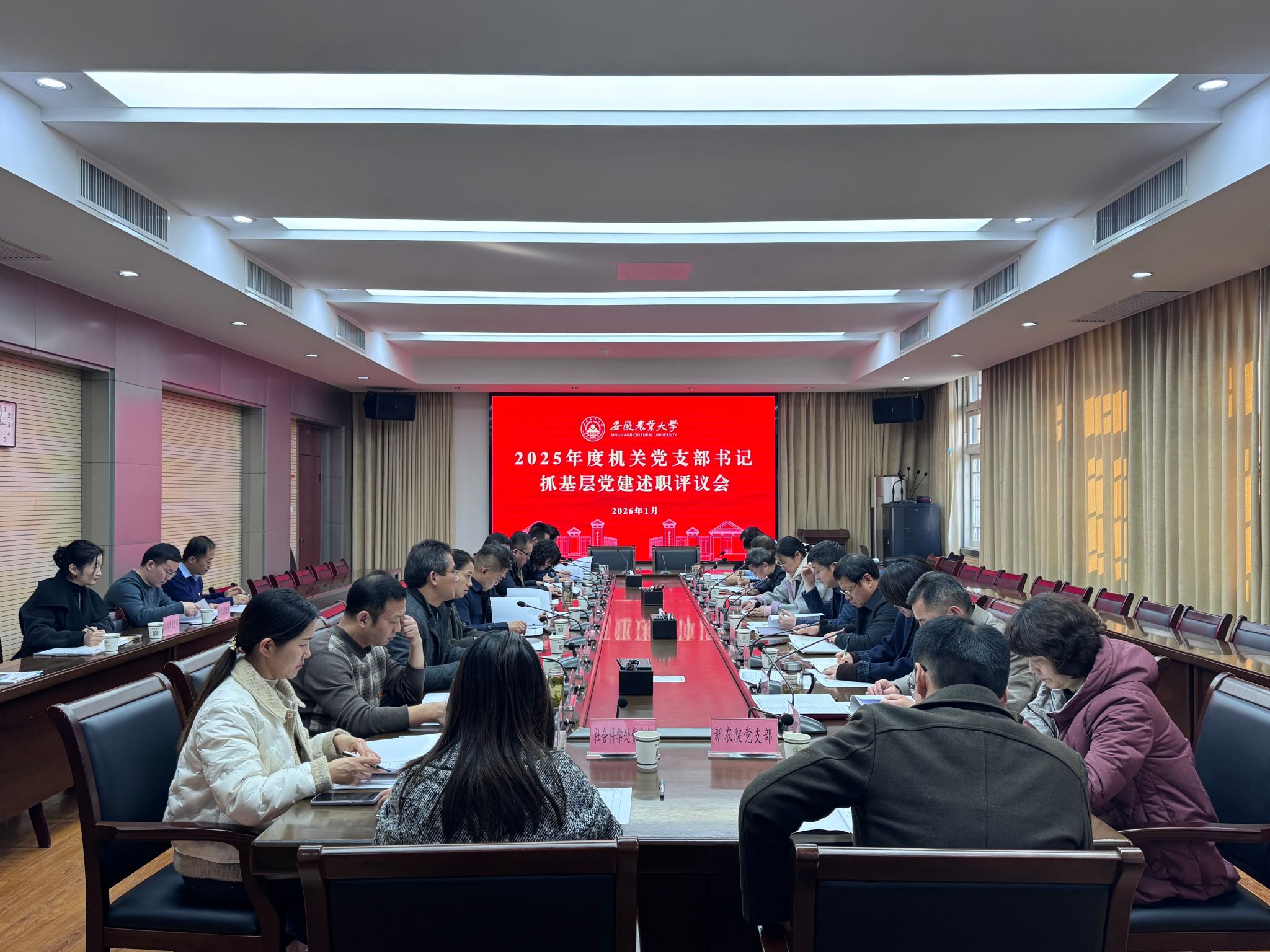 1月14日15:00,机关党委在学校第三会议室召开2025年度党支部书记抓党建述职评议会议。机关党委书记葛红主持会议,机关党委委员、机关各党支部书记参加会议。