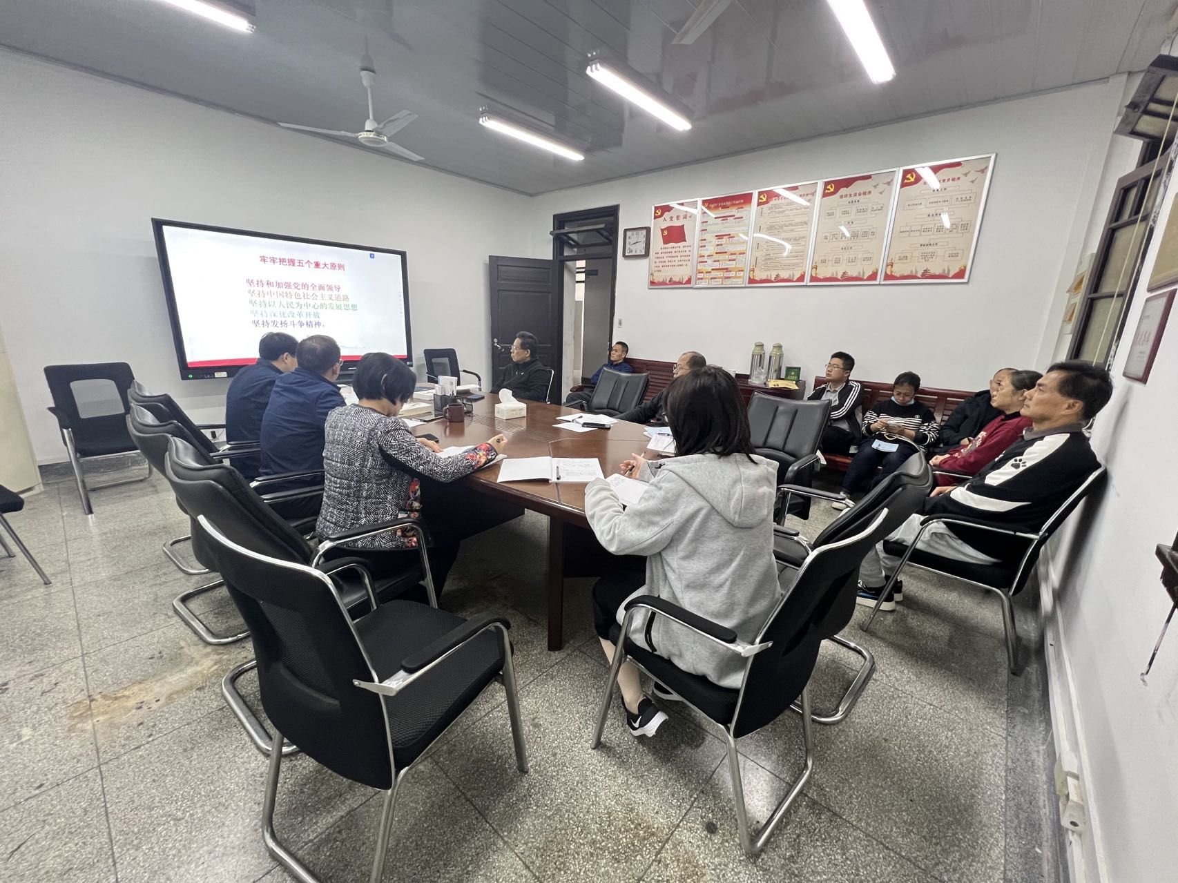 本网讯 10月19日下午,国资处党支部组织支部全体教职工开展了二十大报告集中学习,会议由支部副书记朱先友主持,处领导孙伟、王玉珍参会。