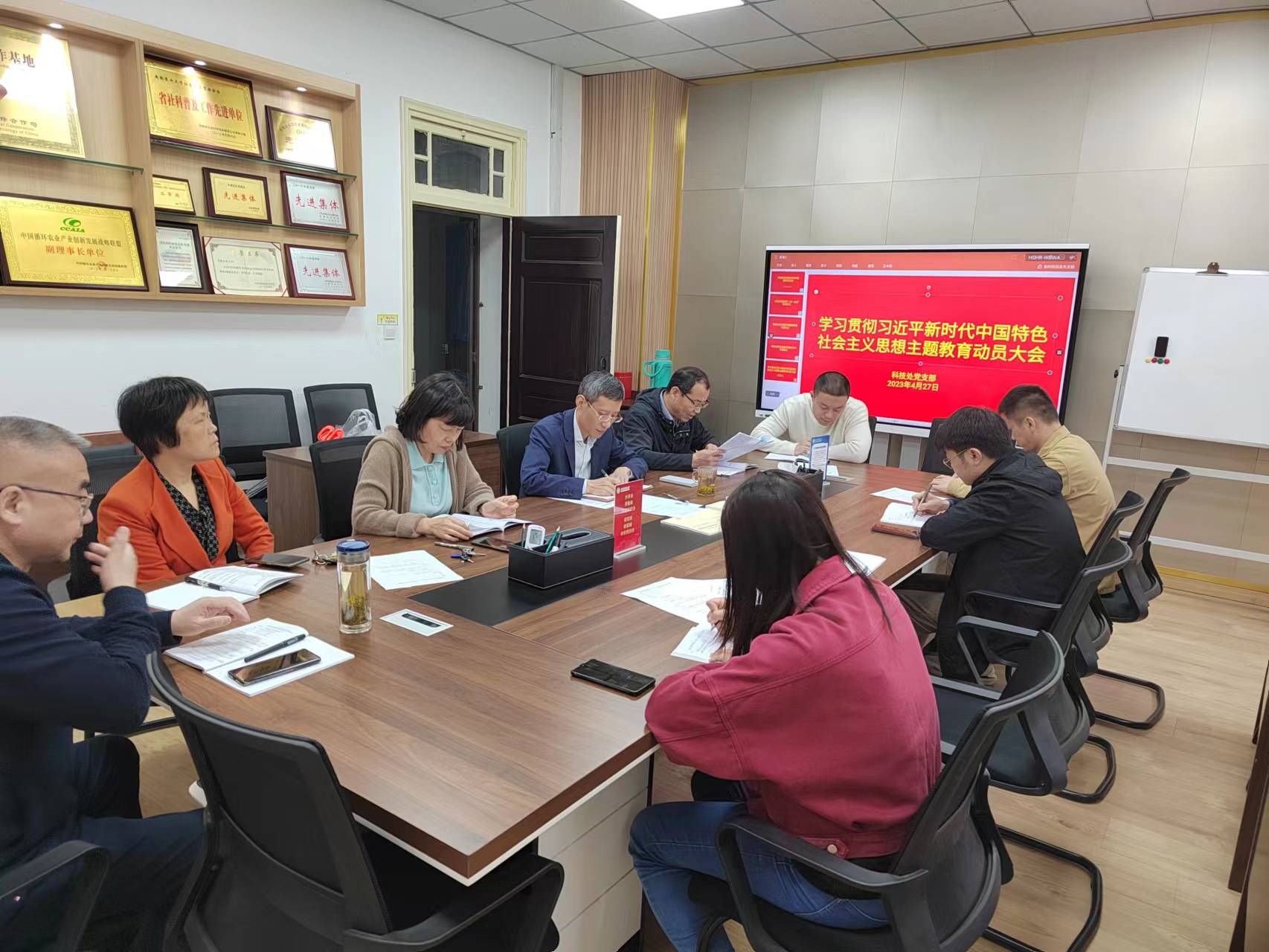 4月27日上午,科技处党支部在处党员活动室召开学习贯彻习近平新时代中国特色社会主义思想主题教育动员会。党支部全体党员参加会议,会议由党支部书记王瑞主持。
