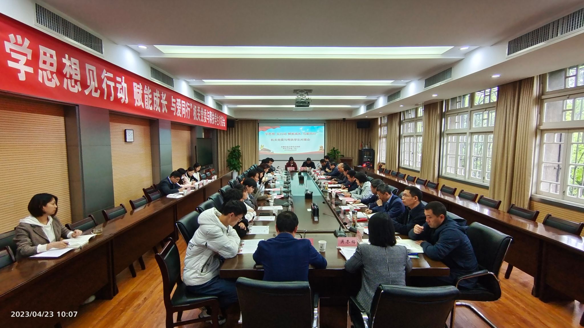 学工队伍紧紧围绕思想政治工作这个生命线,坚持德智体美劳五育并举,将思想引领浸润到学生教育管理服务的各个环节,组织“最美辅导员”宣讲党的二十大精神1次和辅导员沙龙3期,不断加强学工队伍的政治判断力、政治领悟力和政治执行力,提升育人水平。通过开展“青春践行二十大,奋楫扬帆新征程”主题班会(团日)、国旗下的公开课等活动,营造良好的学习氛围,推动学风建设,在学思践行中把习近平新时代中国特色社会主义思想转化为学生日常学习的不竭动力。