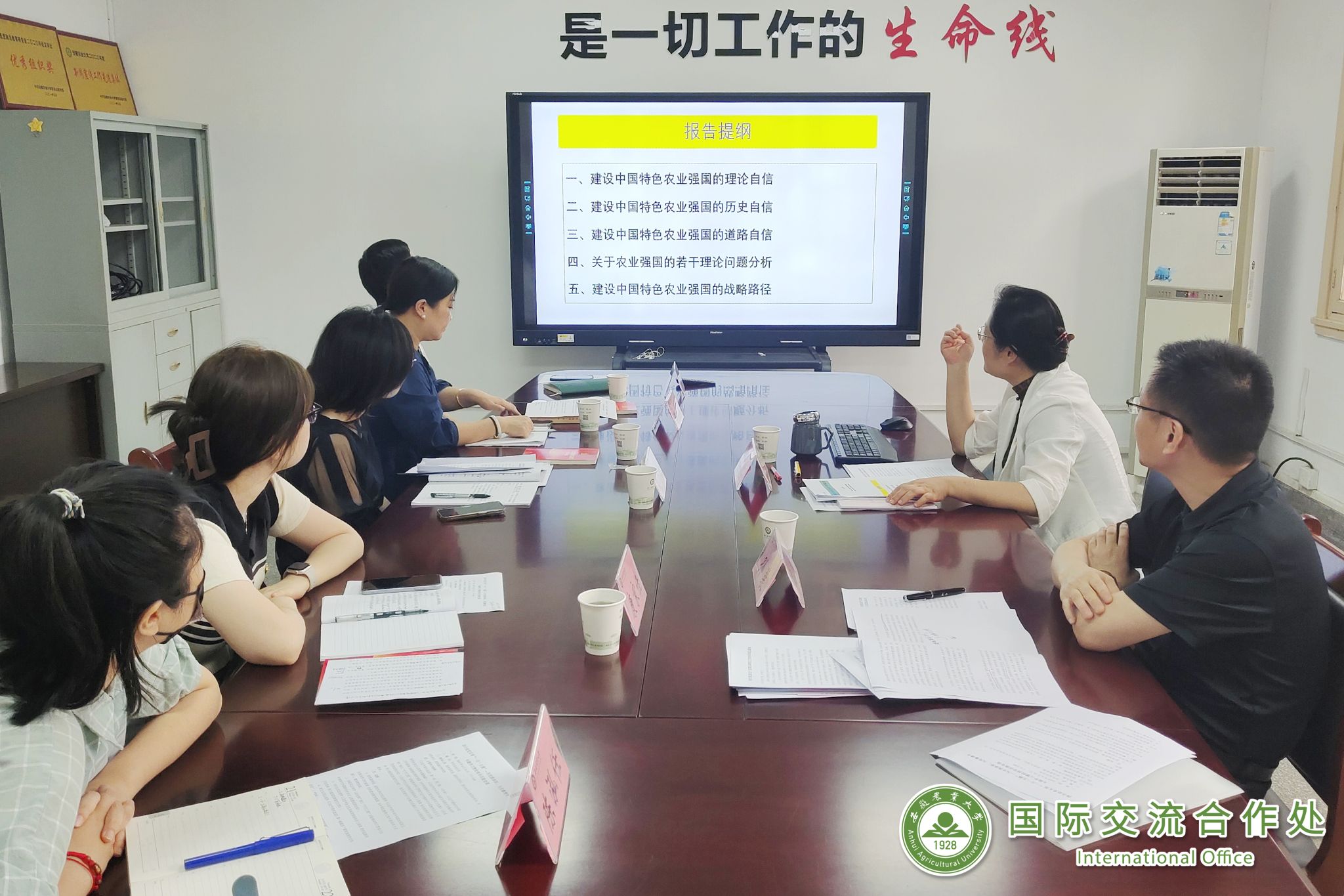 会上,李红带领大家学习了《习近平在中共中央政治局第五次集体学习时强调 加快建设教育强国 为中华民族伟大复兴提供有力支撑》精神,并结合建设中国特色农业强国若干战略问题讨论讲微党课,阐述了中国特色社会主义教育强国的丰富内涵,高等教育在服务国家战略、满足国家重大需求上要发挥龙头作用,强教必先强师的重要战略要求。并从中国古代传统农业文明、中国农业强国理念强化过程,深入浅出地介绍了建设中国特色农业强国的理论、历史、道路自信,以及国家系统部署建设农业强国的战略重点,客观分析了中国农业现代化面对的机遇和挑战,认为农业强国是社会主义现代化强国的根基,科技是建设农业强国的核心驱动。希望大家结合深入开展学习贯彻习近平新时代中国特色社会主义思想主题教育,厚植爱农情怀,练就兴农本领,在加快推进中国农业科技现代化、建设教育强国的大舞台上贡献力量。