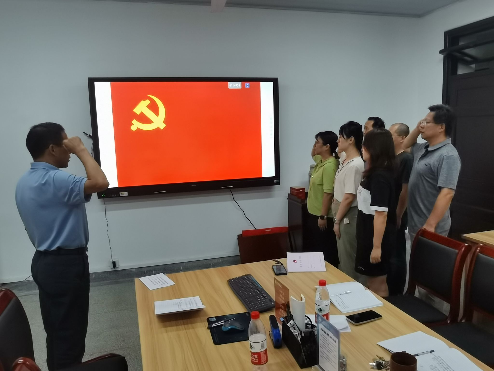 支部书记孙伟首先带领大家重温入党誓词,面对鲜红的党旗,支部党员再次进行了宣誓。
