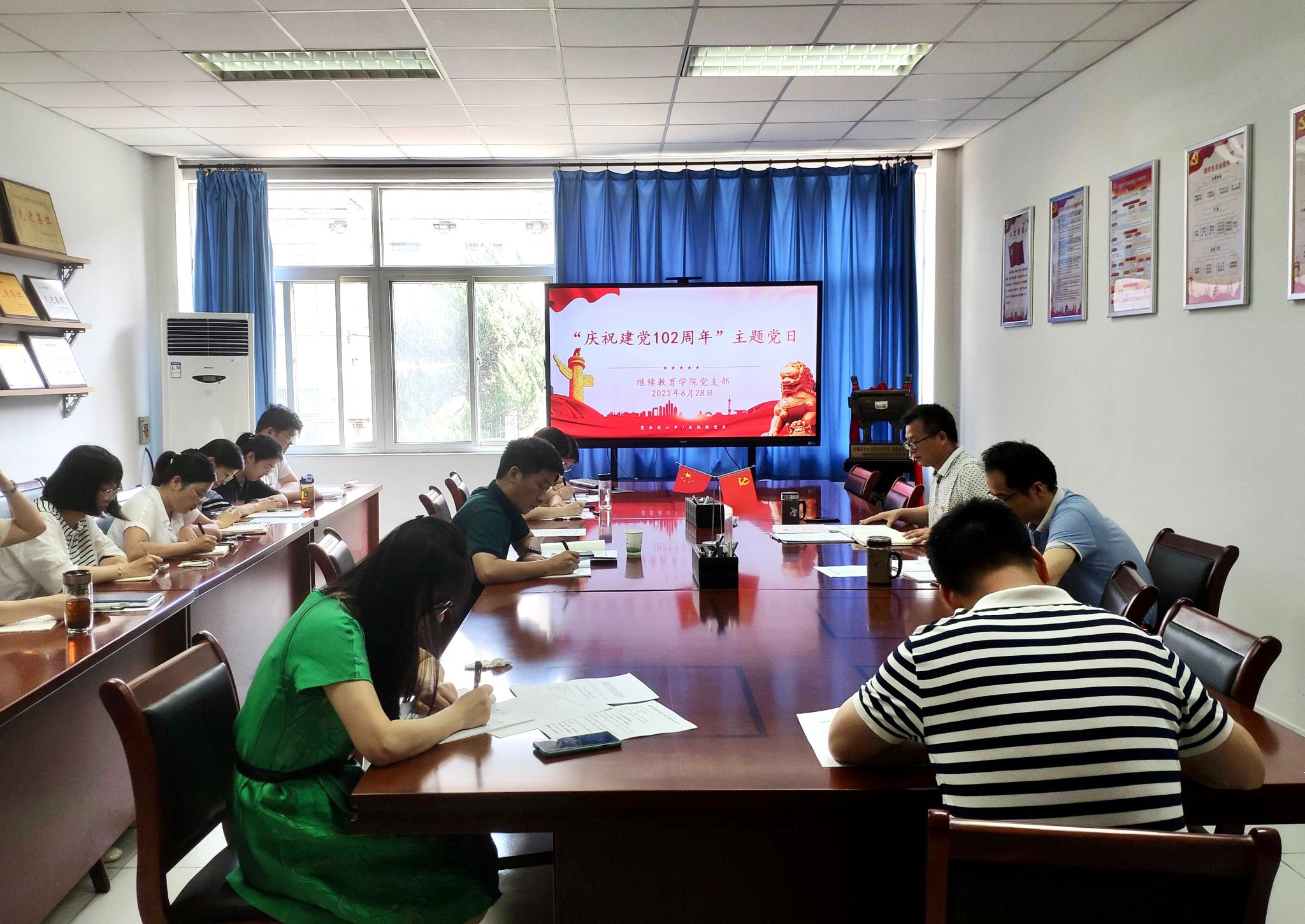 为庆祝中国共产党成立102周年,6月28日,继续教育学院党支部开展“庆祝建党102周年”主题党日“五个一”系列活动。全体在职党员参加活动。