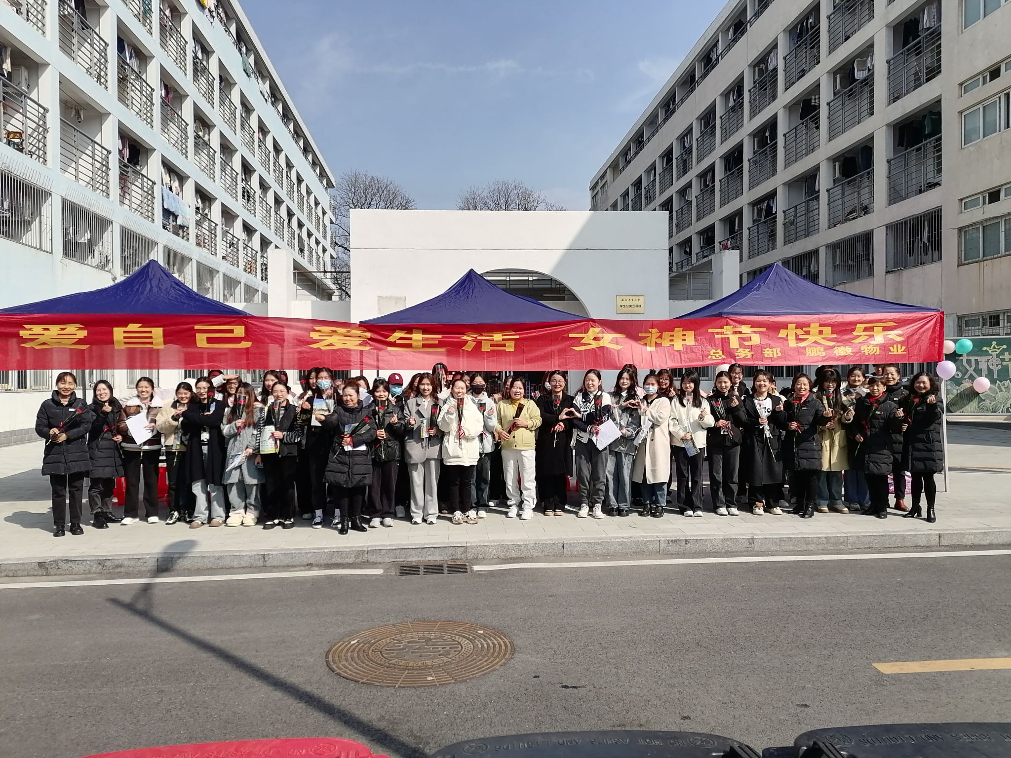 3月8日,学生公寓党支部联合物业开展“芬芳女神节 感恩三月天”主题党日活动,为校园的女神们送上美丽的鲜花和诚挚的祝福。