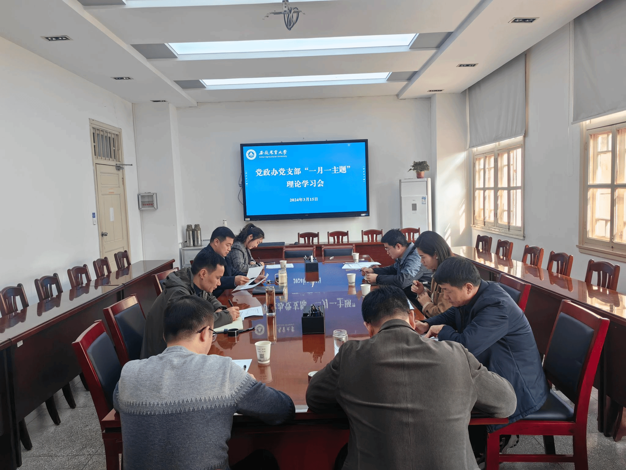 3月15日,党政办党支部在第一会议室开展“一月一主题”理论学习会,会议由支部书记戴照力主持。