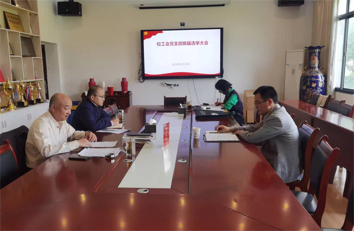 4月18日下午,校工会党支部召开换届选举大会。会议由支部书记刘惠东主持,校机关党委委员、组织部副部长吴永红到会指导。