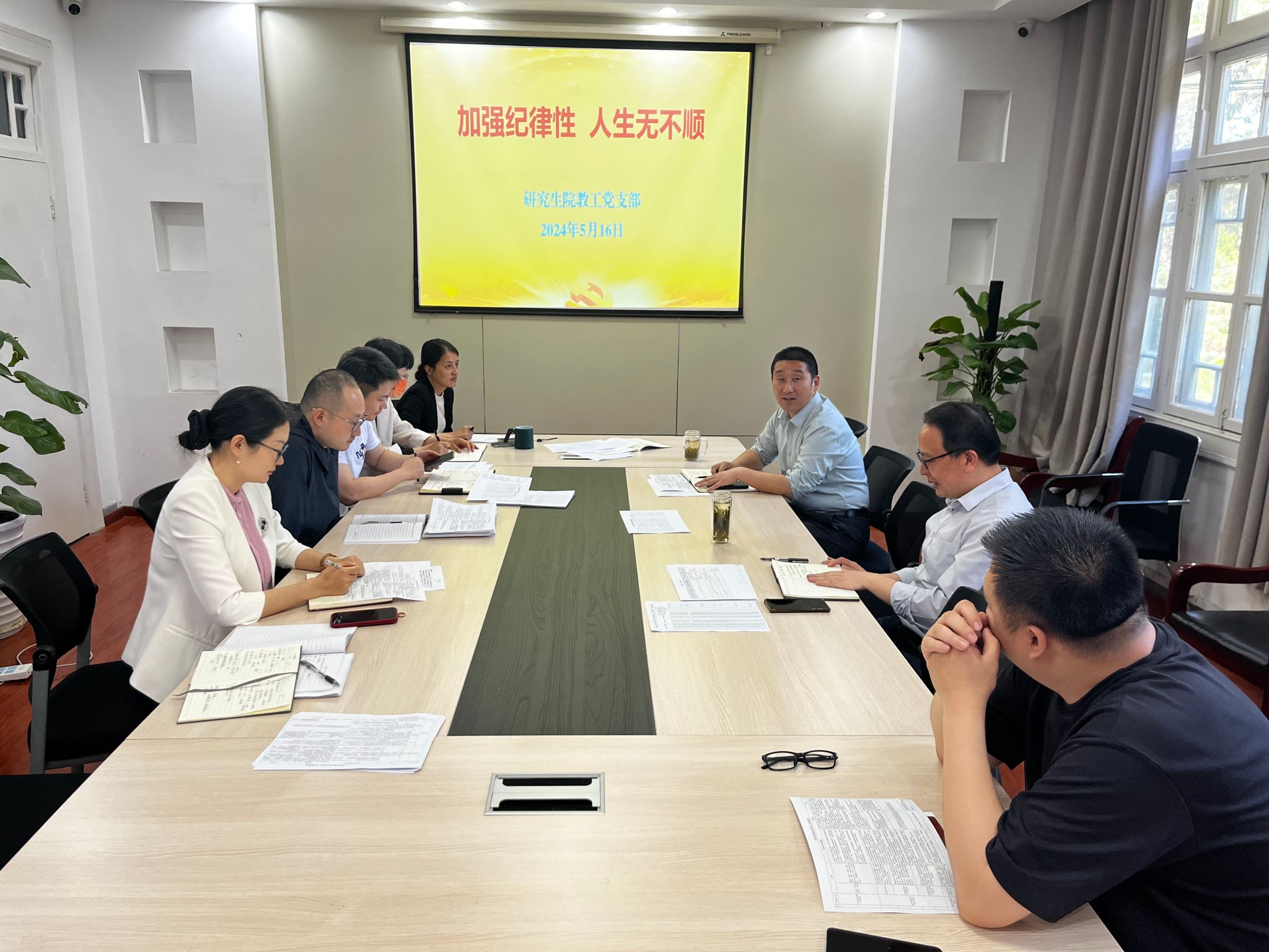 5月16日上午,研究生院教工党支部召开党纪学习教育暨“一月一主题”学习会,会议由支部书记姜家生主持。