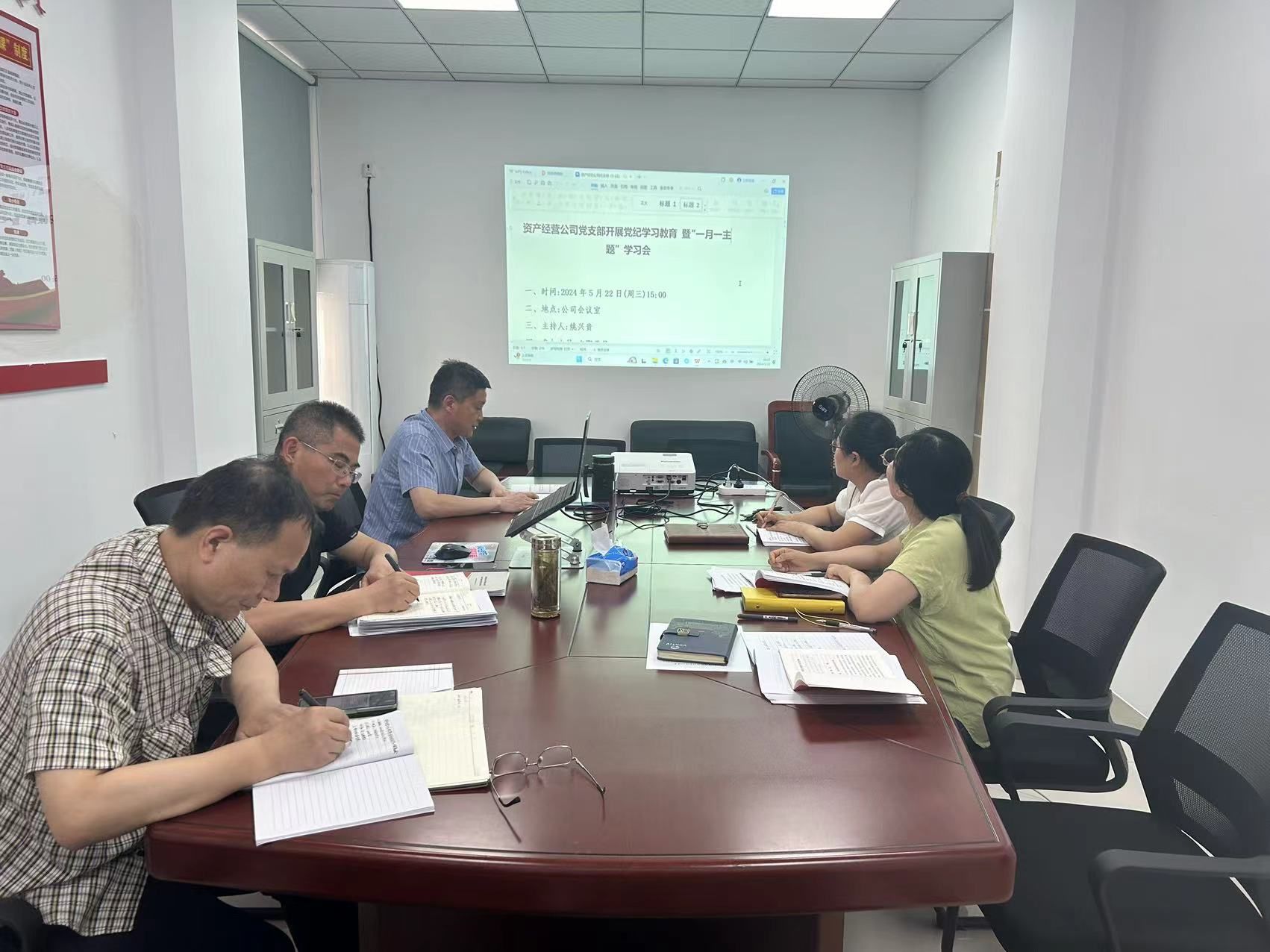 5月22日下午,资产经营公司党支部开展党纪学习教育集中学习暨交流研讨会,会议由党支部书记姚兴贵主持,支部在职党员参加学习研讨。