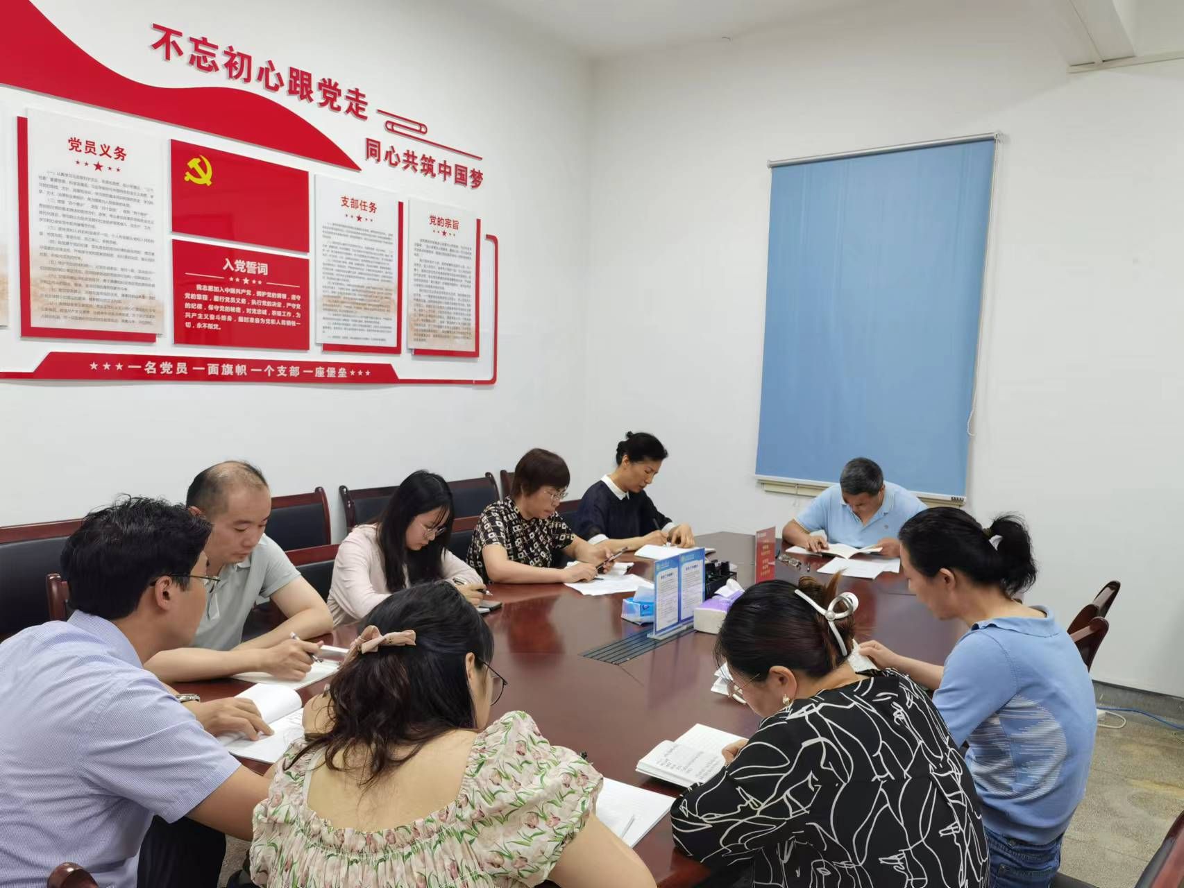 6月5日下午,财务处党支部开展“一月一主题”专题学习主题党日活动,会议由党支部书记严迎春主持,支部全体党员参加。