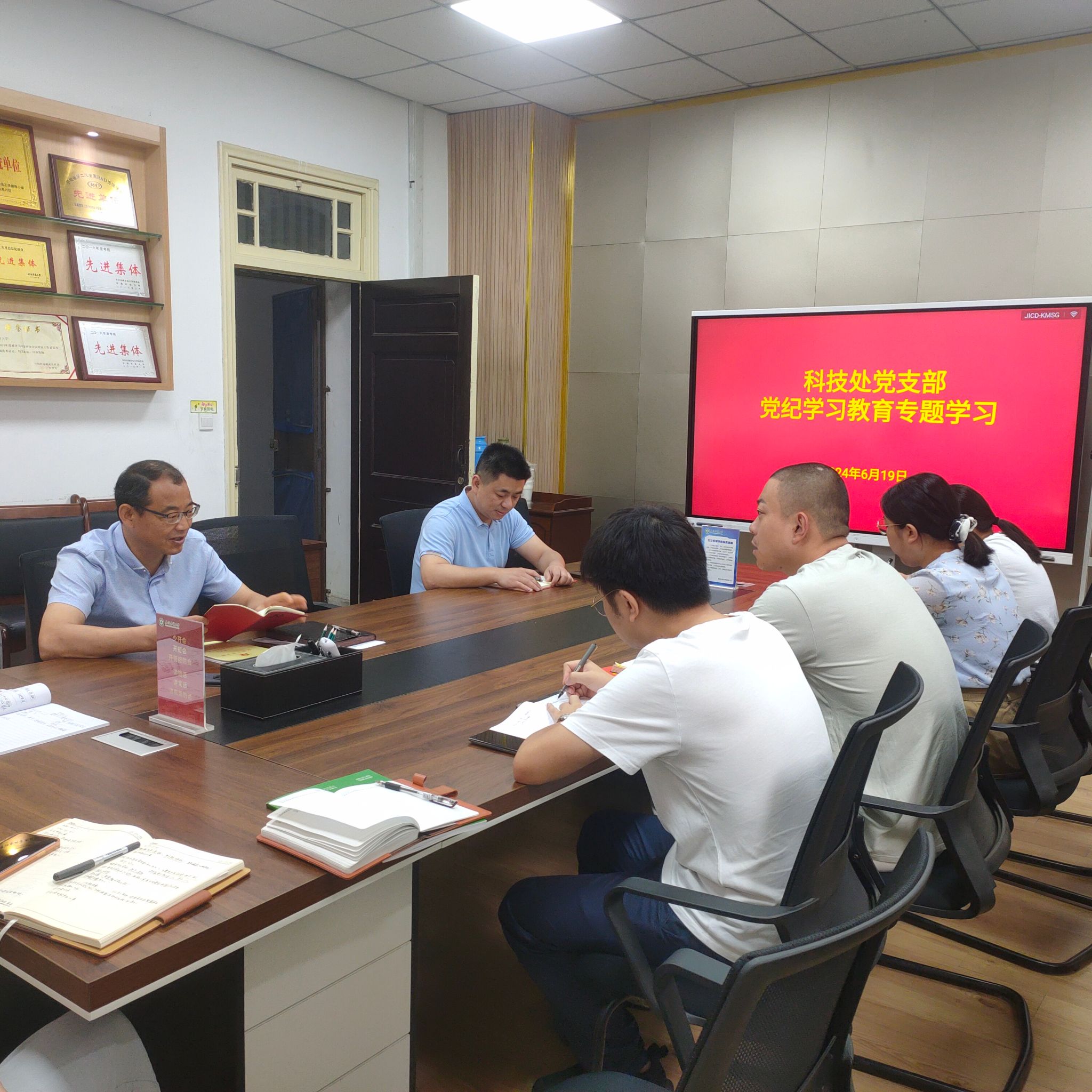 6月19日上午,科技处党支部在108会议室,组织开展党纪主题教育学习研讨,会议由支部副书记主持。