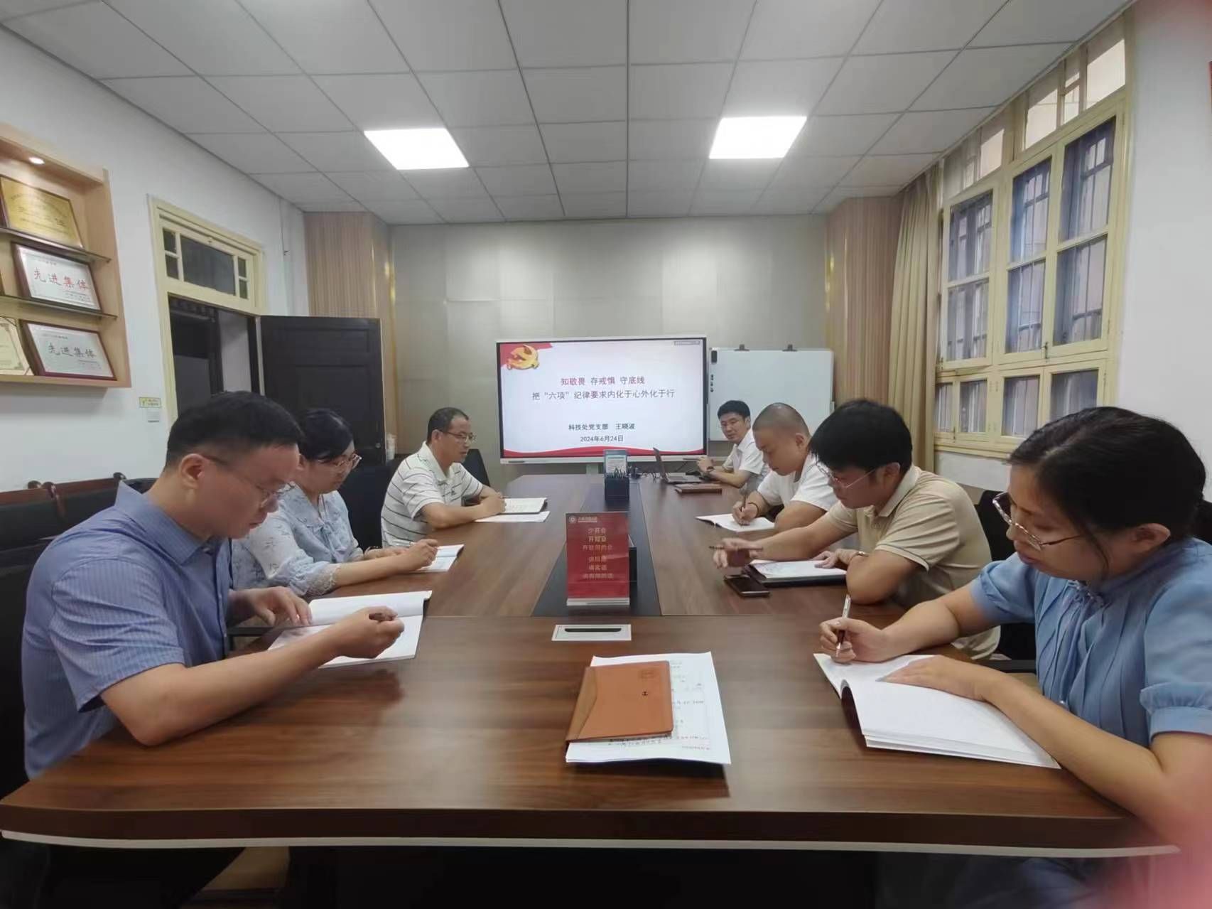 6月24日上午,科技处党支部在108会议室,组织开展党纪学习教育暨支部书记上党课活动,会议由支部书记王晓波主持。