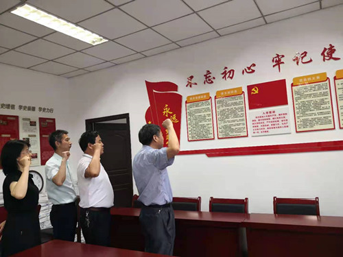 2021年7月7日,审计处党支部开展专题研讨习近平总书记在庆祝中国共产党成立100周年大会上的重要讲话精神、支部书记上党课、重温入党誓词等主题党日系列活动。校机关党委书记刘凯、副书记吴冬梅以普通党员的身份参加了活动。