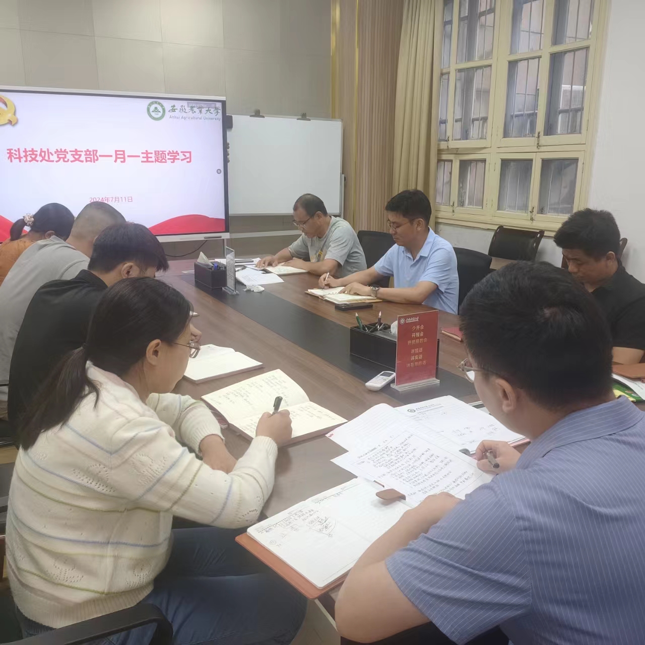 7月11日下午,科技处党支部在党员活动室开展一月一主题集中学习暨支委选举会,会议由支部书记王晓波主持。