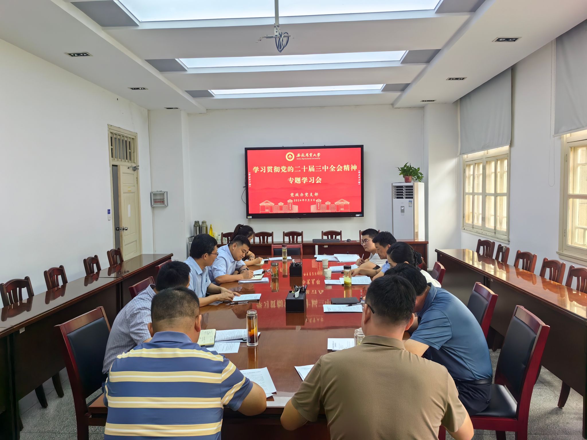 9月3日上午,校党委书记张庆亮以普通党员身份参加党政办党支部组织生活,宣讲党的二十届三中全会精神。