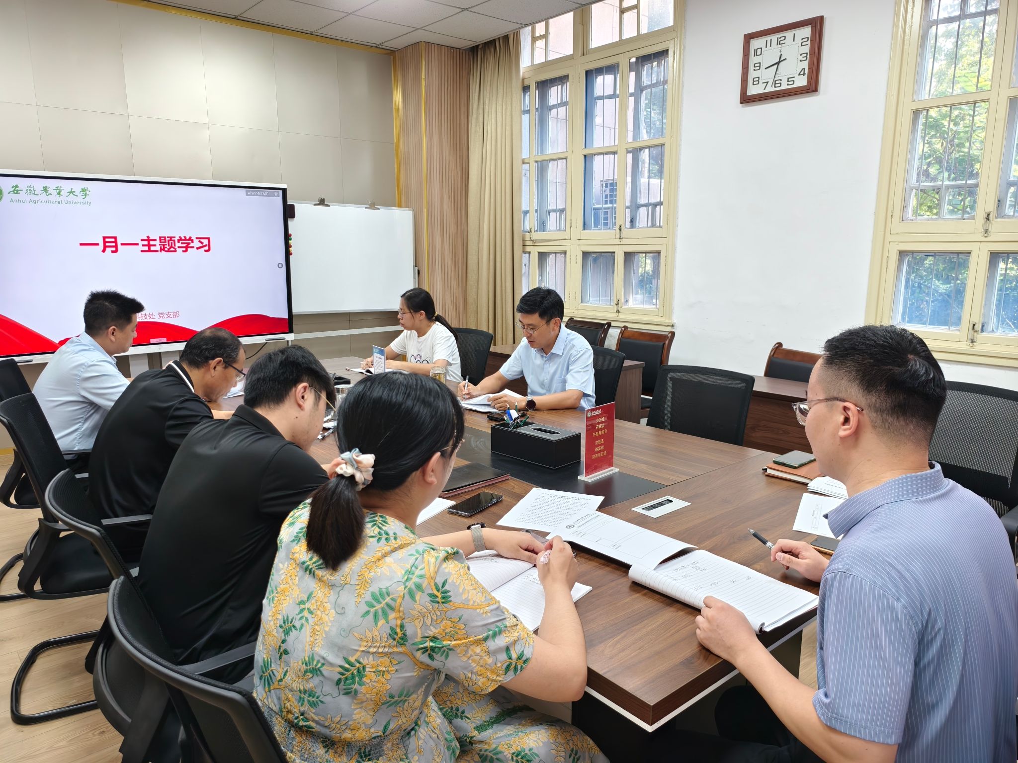 9月10日上午,科技处党支部在党员活动室召开支部大会暨“一月一主题”学习活动,会议由党支部书记王晓波主持。