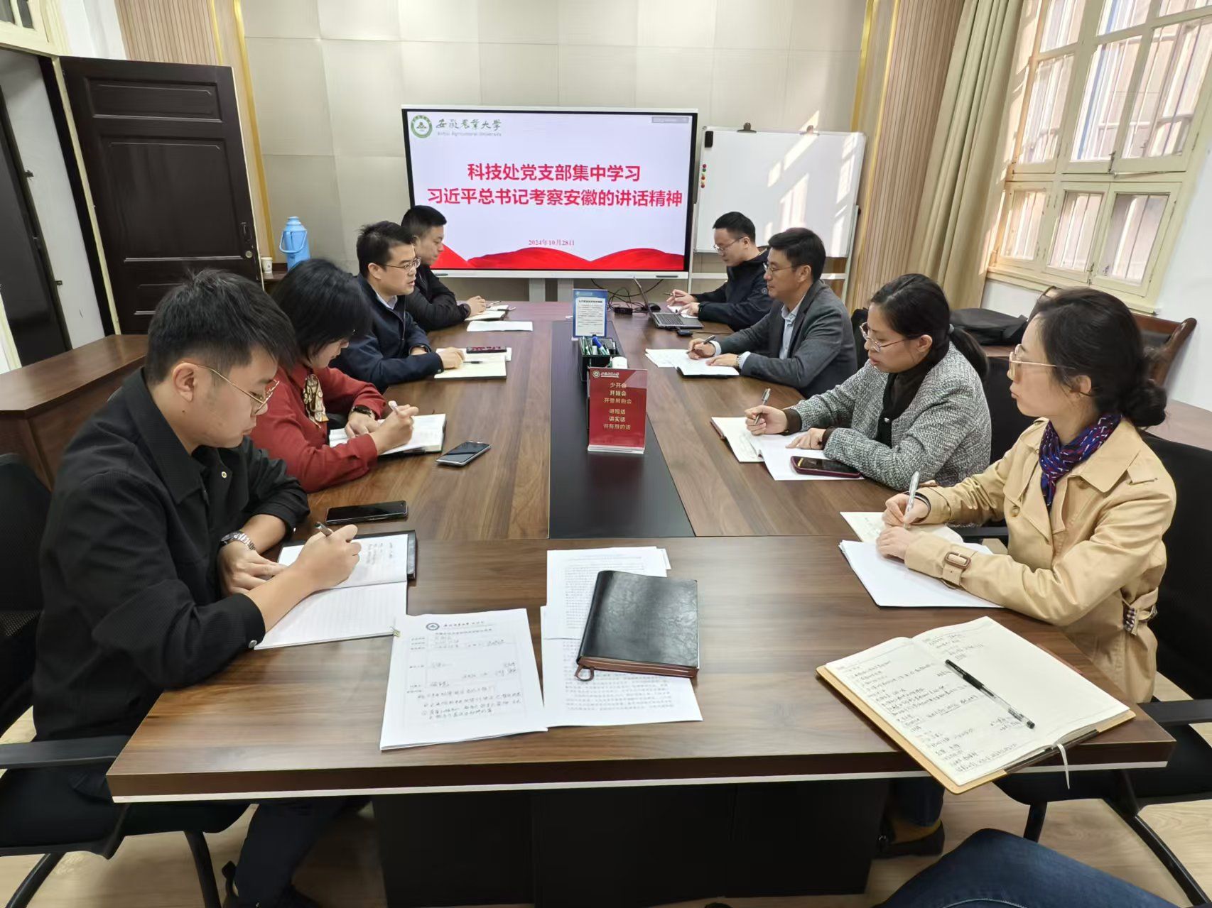 10月28日上午,科技处党支部召开“一月一主题”集中学习会,专题学习习近平总书记在安徽考察时的重要讲话精神,会议由党支部书记王晓波主持。