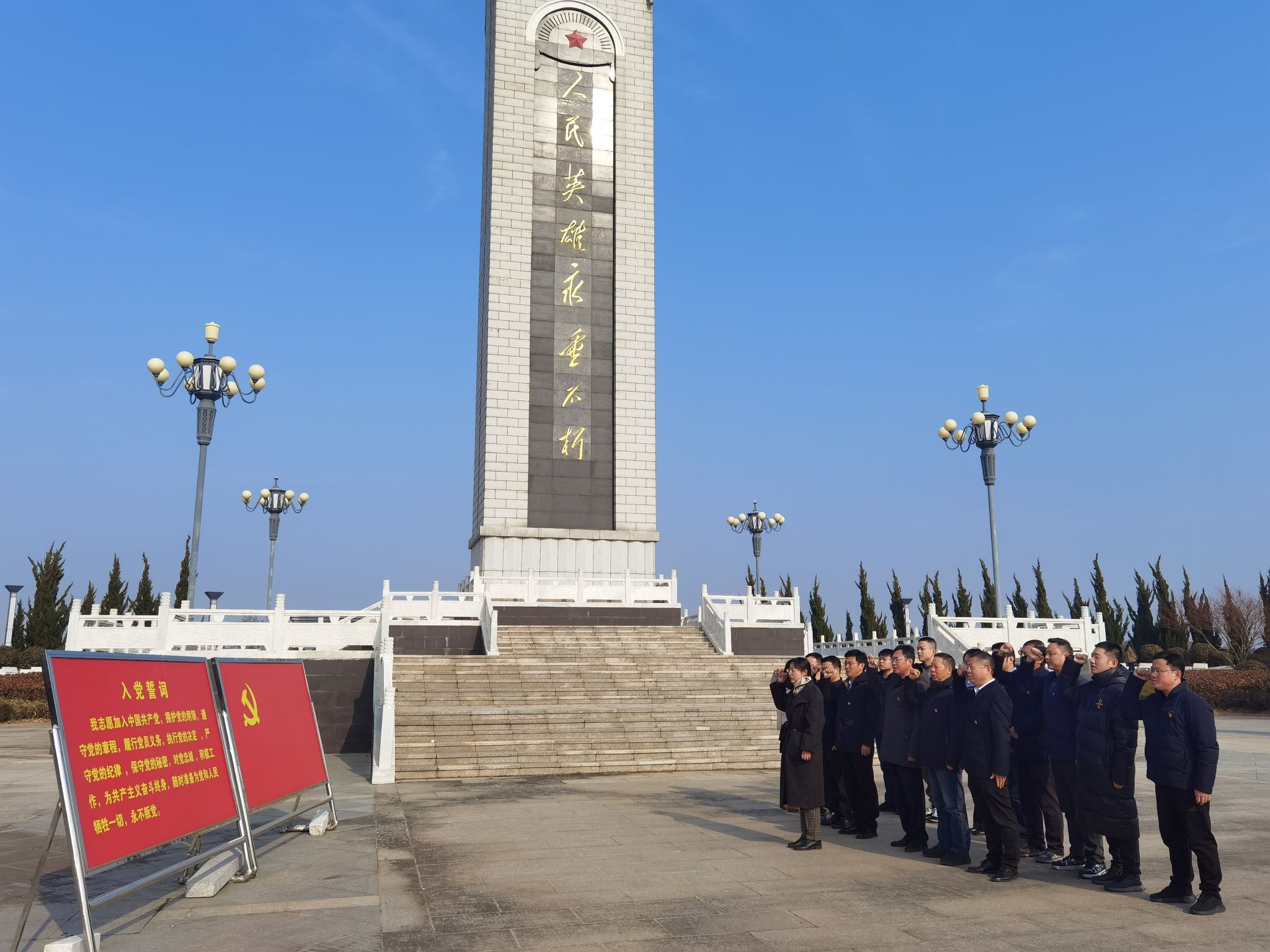 全体党员在讲解员的带领下参观了藕塘革命纪念馆,聆听了讲解员声情并茂的讲述,追寻先烈的脚步,近距离了解老一辈革命先烈英勇奋斗的艰苦历程和卓越贡献,深刻感悟红色精神力量。在庄严肃穆的革命烈士纪念碑前,全体党员面向党旗庄严宣誓,重温入党誓词,用铿锵有力的誓词彰显初心,牢记党员身份,永葆党员本色。