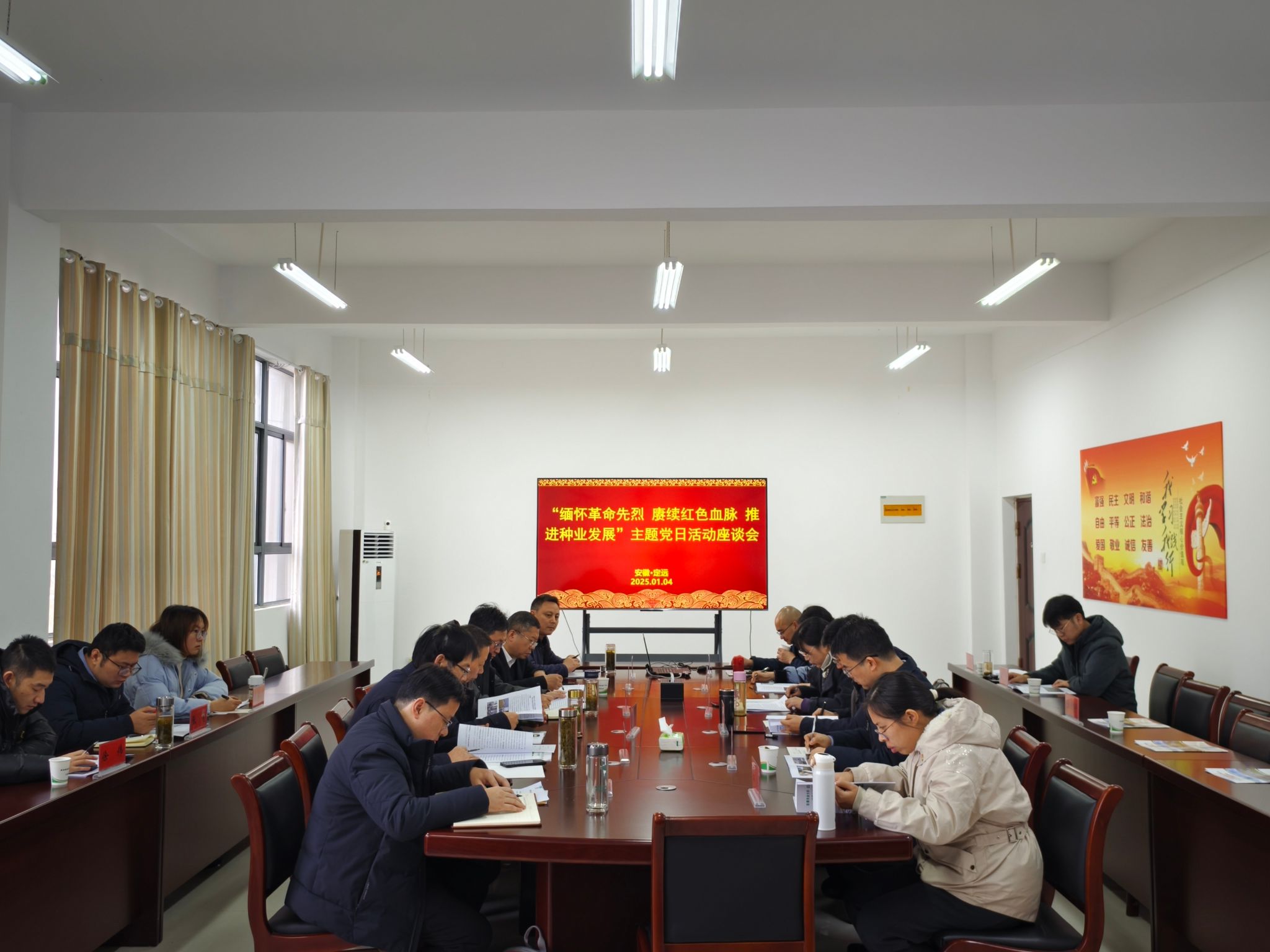 随后全体党员参观了我校江淮分水岭试验站并开展座谈交流。座谈会上,认真学习了习近平总书记的二零二五年新年贺词和习近平总书记关于种业振兴的重要指示精神,省农业农村厅种业管理处党支部书记刘军领学了习近平总书记关于种业振兴创新的重要论述,会议指出,要把种源安全提升到关系国家安全的战略高度,重点抓好资源保护、创新攻关、企业扶优、推进种业知识产权保障等工作。安徽农业大学科技处党支部书记王晓波围绕我校2024年度种业进展情况做了详细汇报,种业管理处领导就我校平台建设等相关工作给予具体指导,支部党员围绕我省种业政策及我校种业工作进行了深入探讨。