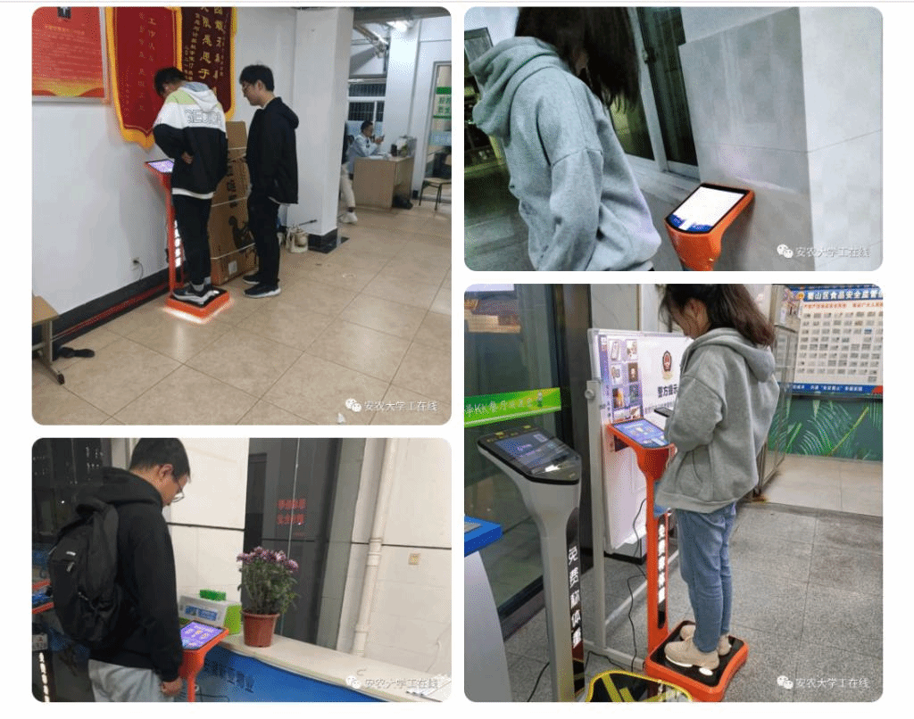 在调研中发现,学校师生积极参加体育锻炼,关注自身体质健康,关心身体重量变化,希望学校在校园内有方便称体重和记录身体重量的系统或平台。学工部(处)根据师生需求,积极寻找解决问题的办法,于10月中旬够买了2台电子秤在勤学楼和校内4栋学生宿舍试用,并通过易班平台设置查询和监测功能,试用期间,深受师生喜爱。10月底,学工部(处)又购置40多台,分别部署在在全校学生宿舍、食堂和各学院办公楼内,方便全校师生使用。目前仅一周时间,已使用超7600人次。