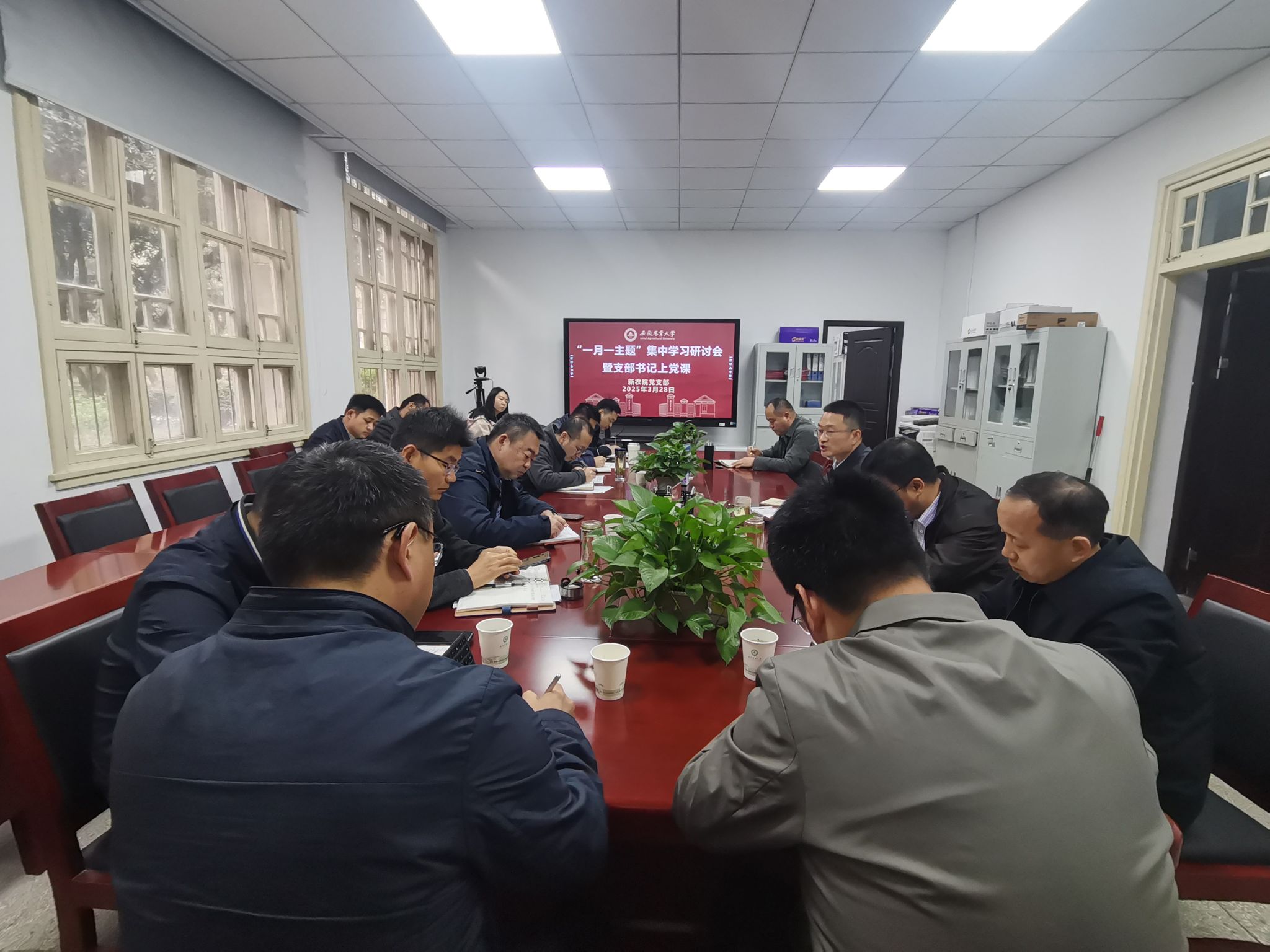 3 月 28 日上午,新农院党支部召开“一月一主题”集中学习研讨会暨支部书记上党课活动,会议由党支部书记谈应权主持。