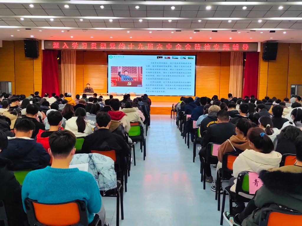 本网讯 为引导全体团学干部全面学习贯彻党的十九届六中全会精神,深刻认识和把握党的百年奋斗重大成就和历史经验。12月2日,校团委党支部为团学干部举办“学习贯彻党的十九届六中全会精神”专题辅导报告会,马克思主义学院院长黄洪雷应邀作报告,报告会由校团委副书记张志平主持。校第三十一期团干培训班学员、校青马工程培训班学员共350人参加了报告会。