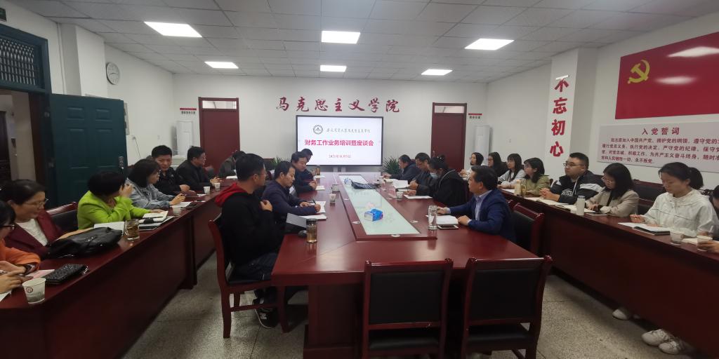 本网讯 为把党史学习教育与工作紧密结合,围绕“我为师生办实事”主题。11月5日下午,财务处处长严迎春一行五人赴马克思主义学院开展财务工作业务培训暨座谈会,为教师解读财务制度,进行财务工作业务培训,解答教职工财务报销疑问。