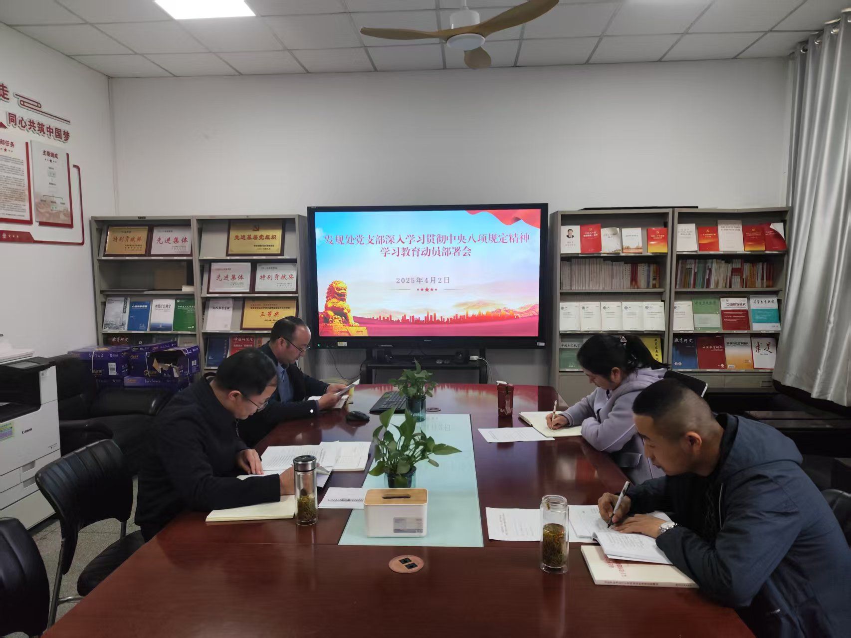4月2日上午,发规处党支部开展深入贯彻中央八项规定精神学习教育动员会。会议由支部书记程玉峰主持,全体党员参加会议。