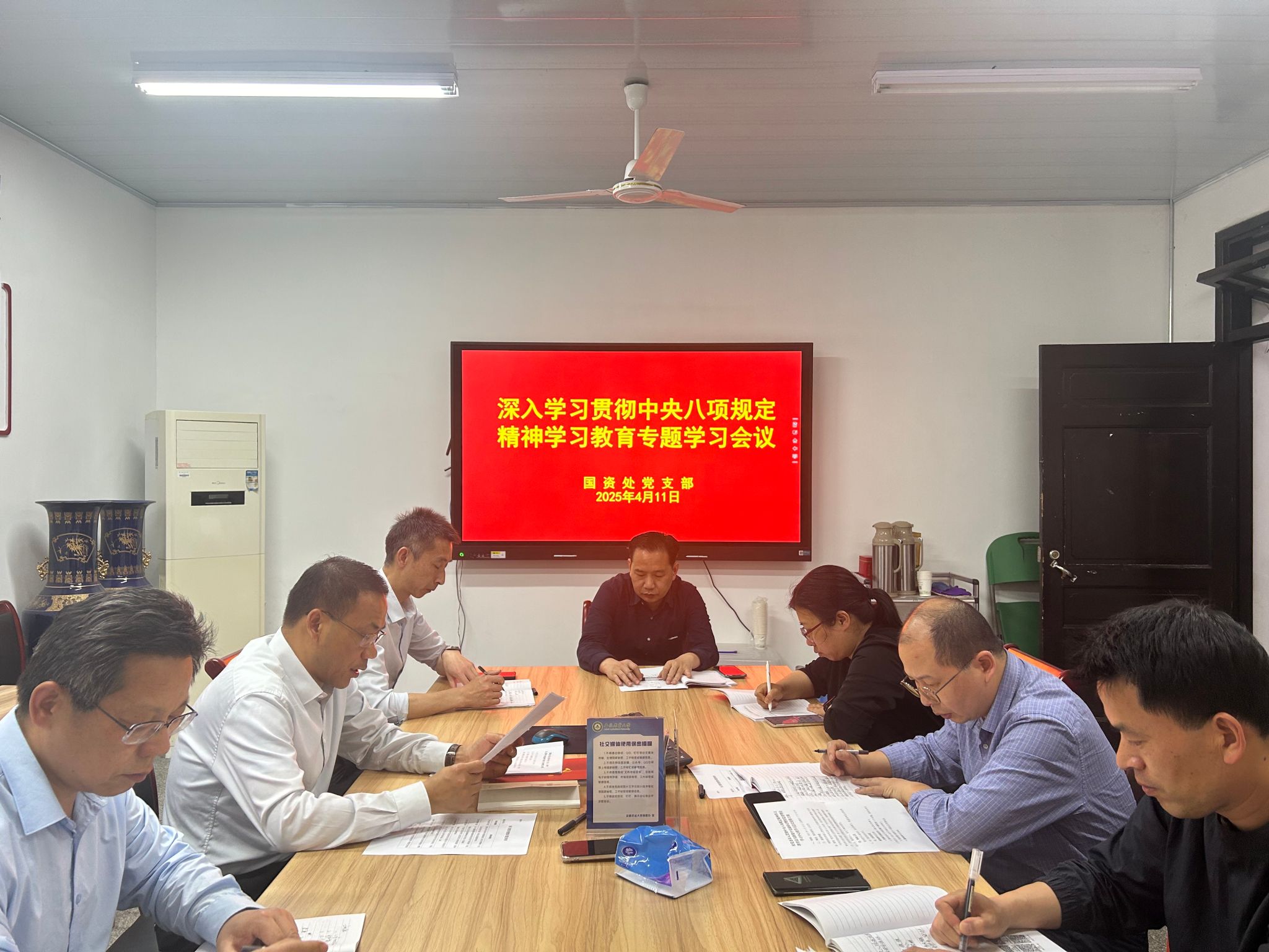4月11日下午,国资处党支部开展深入贯彻中央八项规定精神学习教育专题学习,会议由党支部书记孙伟主持。