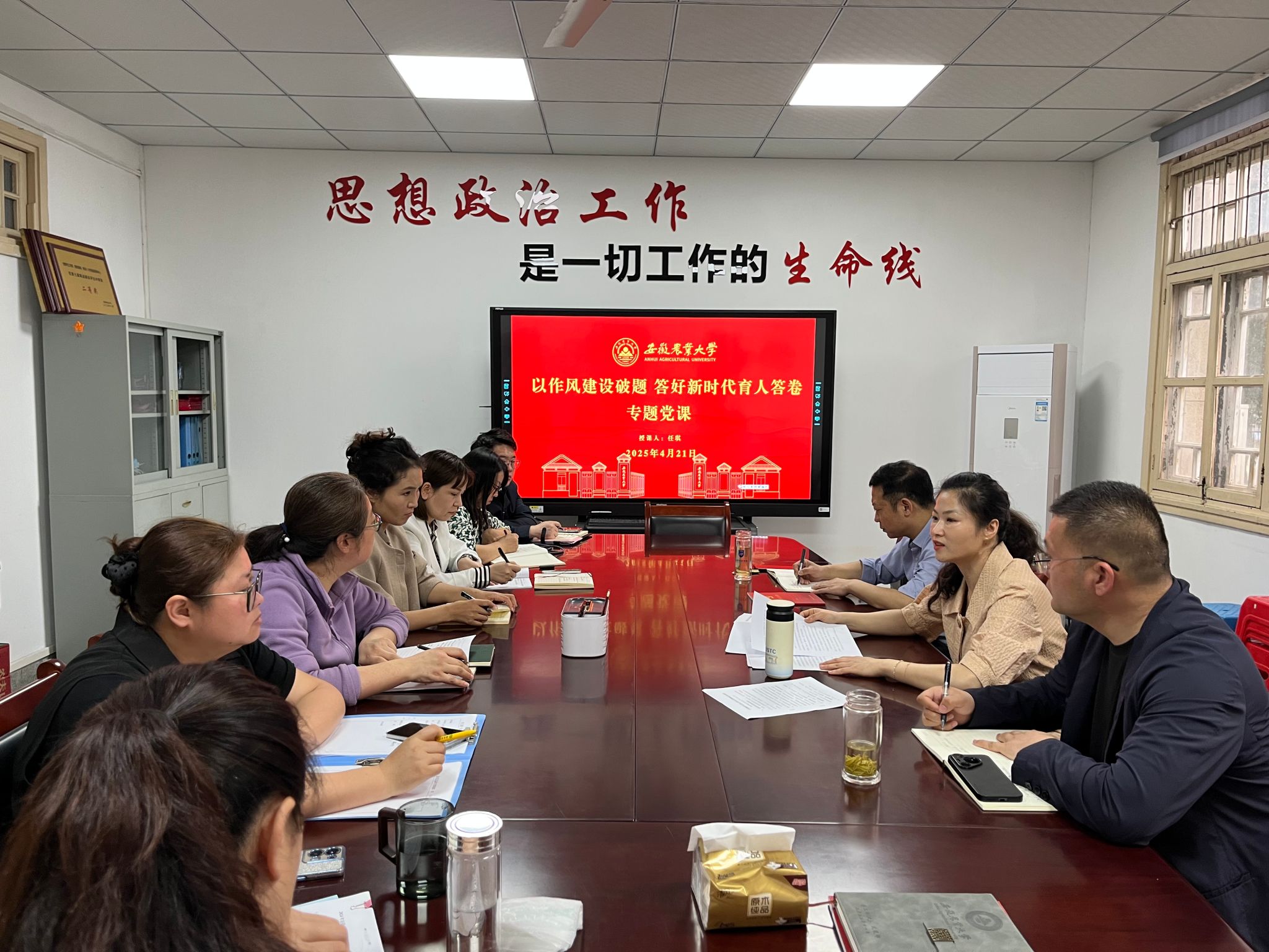 4月21日上午,学生处党支部召开深入贯彻中央八项规定精神学习教育专题学习会暨支部书记上党课。会议由支部书记任琪同志主持。