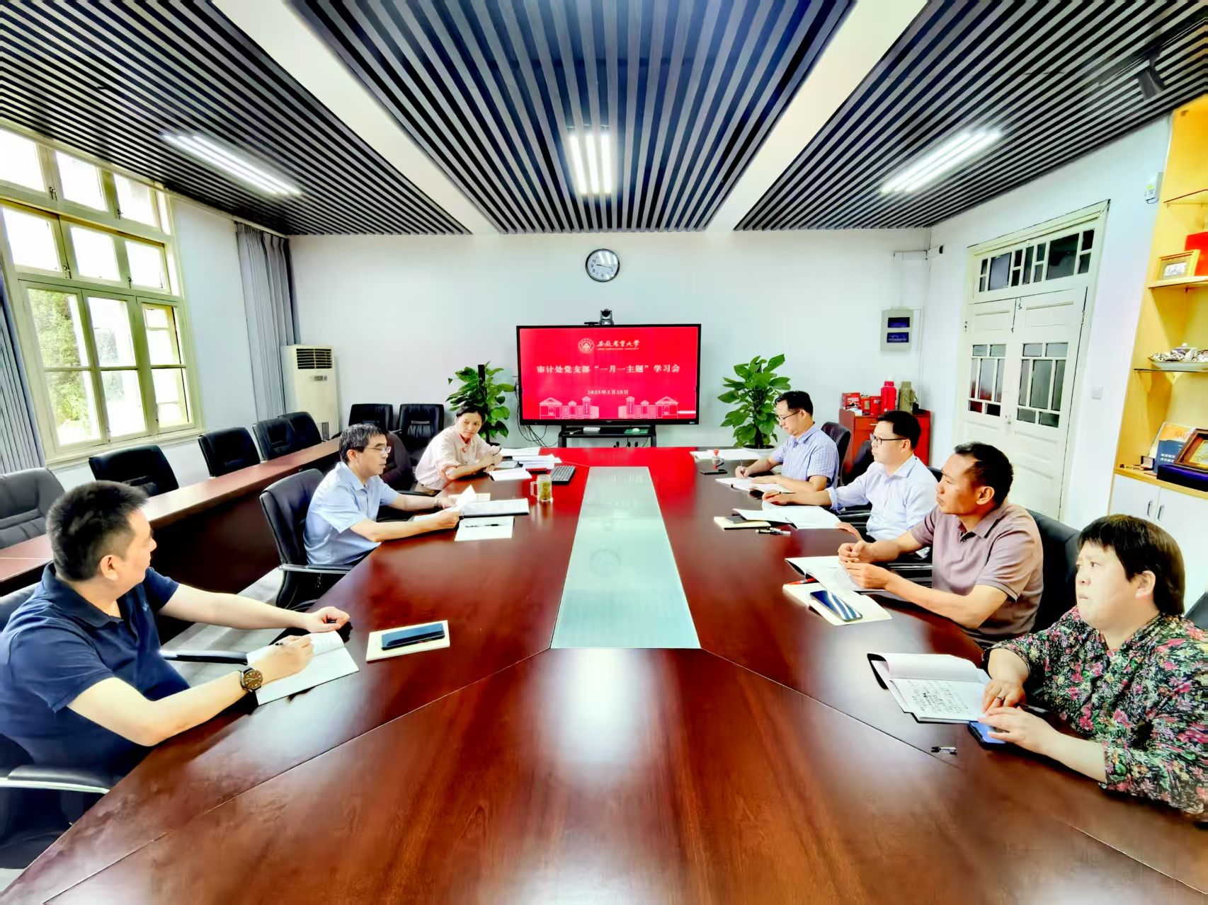 5月28日上午,审计处党支部召开党的作风建设专题学习会。校党委常委、副校长蔡德军以普通党员身份参加会议,并讲授专题党课。会议由支部书记许甘芸主持,支部全体党员参加。