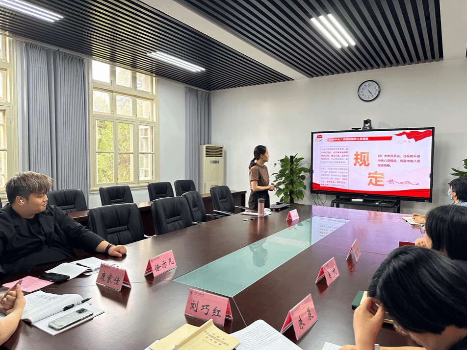 6月9日下午,国合处党支部开展深入贯彻中央八项规定精神学习教育专题学习,会议由支部副书记张华建主持。