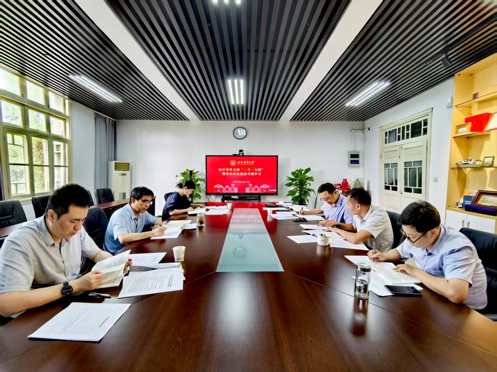 6月13日,审计处党支部组织召开“一月一主题”暨党的作风建设专题学习会。校党委常委、副校长蔡德军以普通党员身份参加,支部书记许甘芸主持会议,支部全体党员参加会议。