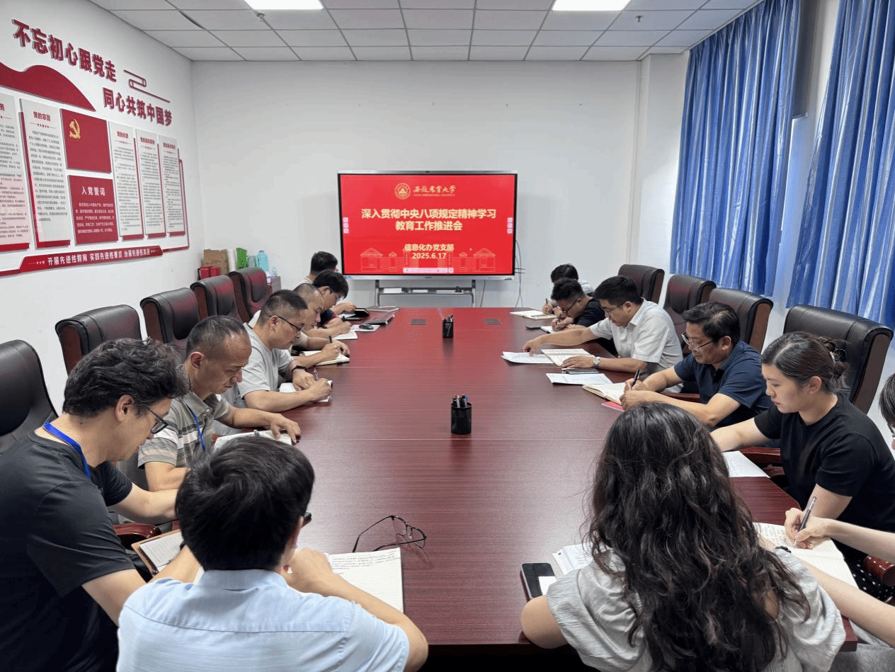 6月17日下午,信息化办党支部召开深入贯彻中央八项规定精神学习教育工作推进会。会议由党支部书记徐光翔主持,全体成员参加会议。