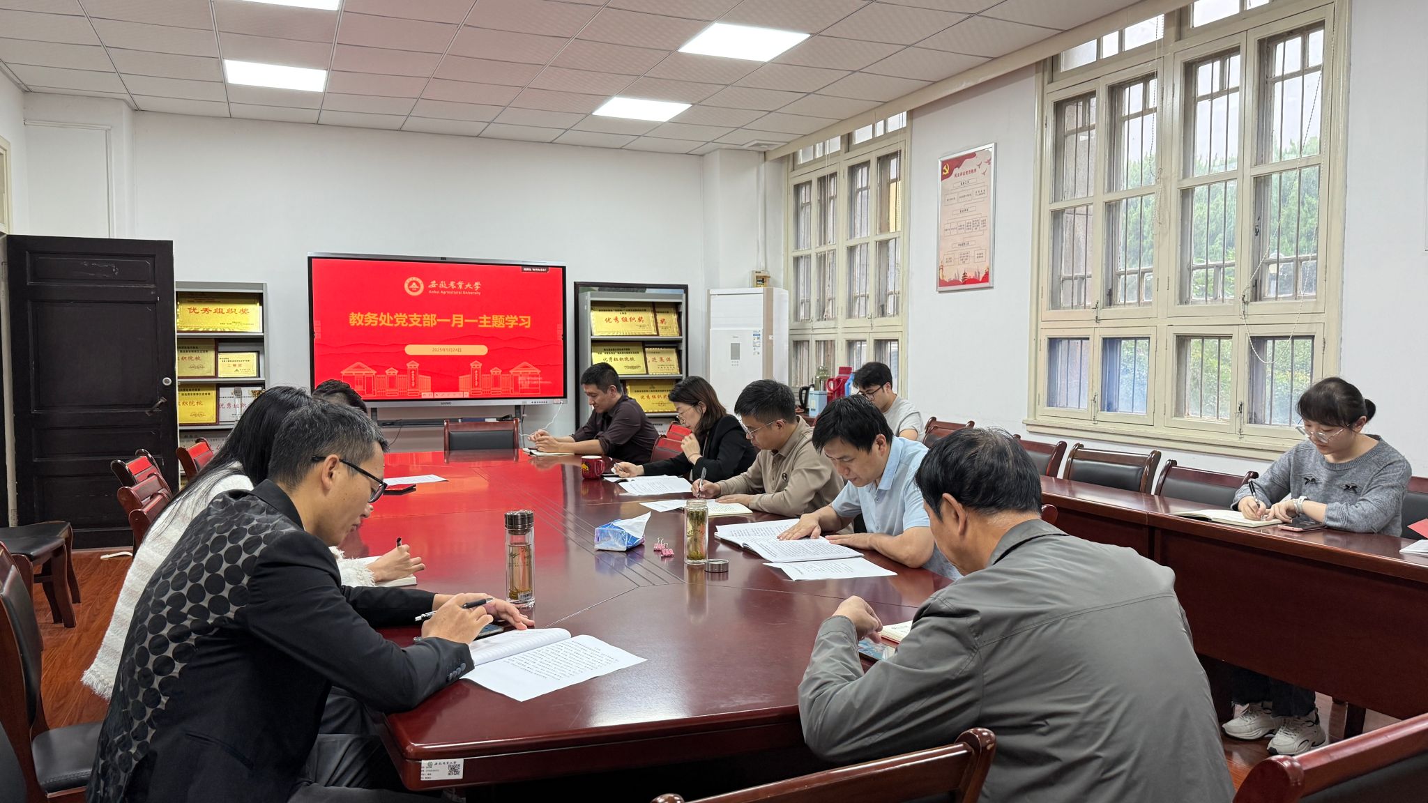 9月24日下午,教务处党支部在勤政楼124会议室召开“一月一主题”学习会议。会议由党支部书记、教务处处长汪钟凯主持,支部全体党员参会。
