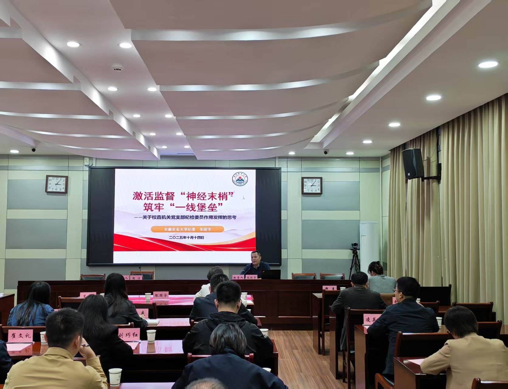 为进一步提升机关纪检委员履职能力和业务水平,10月14日下午,机关党委、机关纪委在校第二会议室召开机关纪检委员专题培训会议,校纪委副书记张国学、机关党委书记葛红和各党支部纪检委员参加了培训,培训会由机关纪委书记陶佳主持。