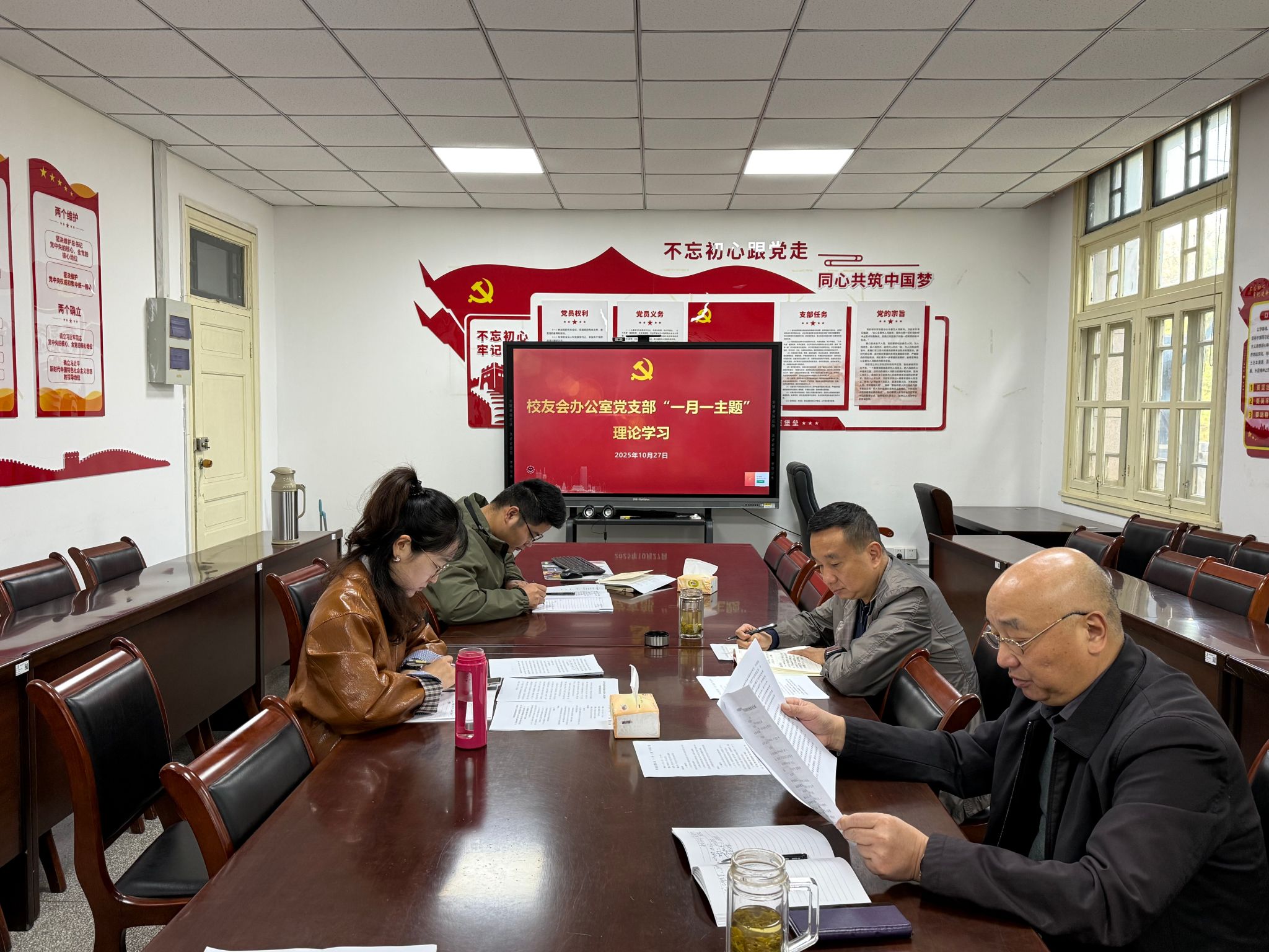 10月27日上午,校友会办公室党支部召开“一月一主题”理论学习会,会议由党支部书记刘海涛主持。