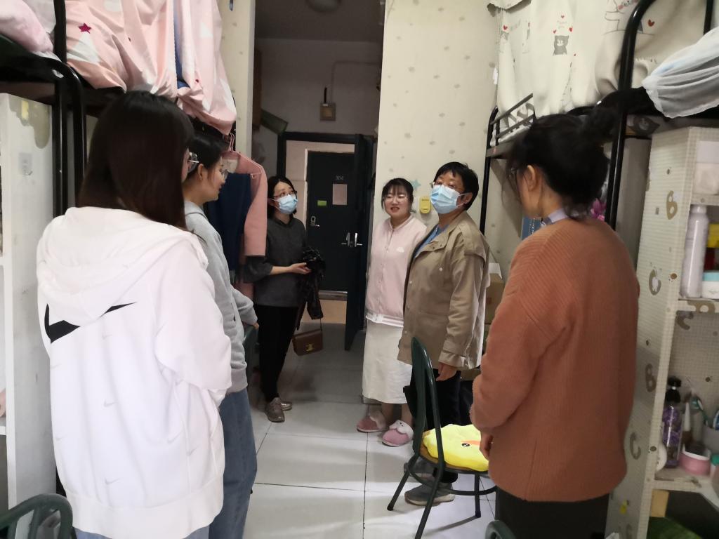 “宿舍是我们的小家,不仅是我们生活的地方,也是我们科研的地方”,几位在宿舍的研究生有的在上网课,有的在撰写科研论文。在走访研究生公寓宿舍时,大家围绕防疫、防火、防诈等进行了亲切交流。