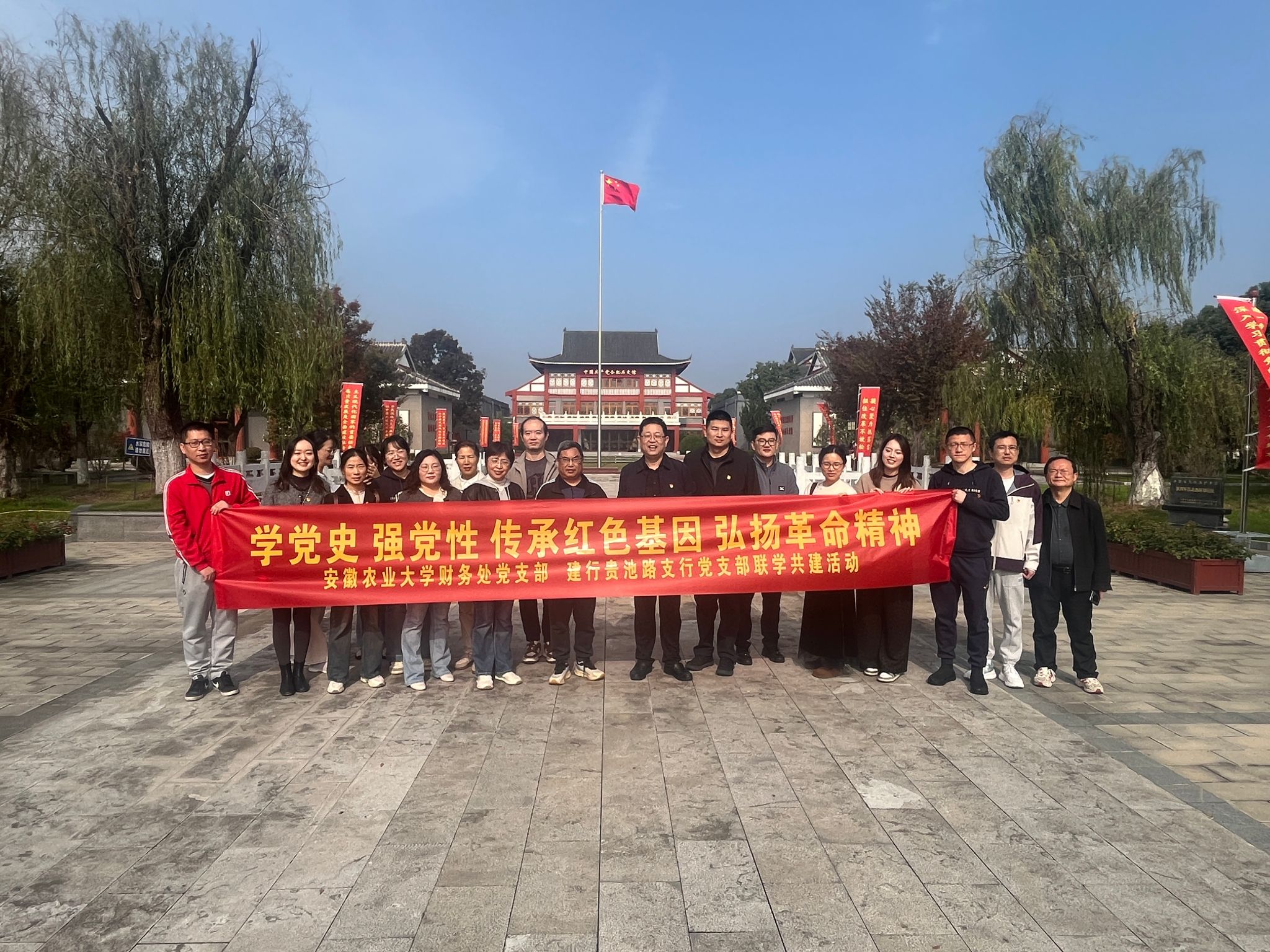 为重温革命历史,赓续红色血脉,进一步增强党员的党性修养和爱国热情,11月1日上午,财务处党支部与建设银行贵池路党支部赴肥东县中国共产党合肥历史馆开展“学党史 强党性 传承红色基因 弘扬革命精神”主题党日活动,财务处党支部全体在职党员、财务处民主党派代表参加活动。