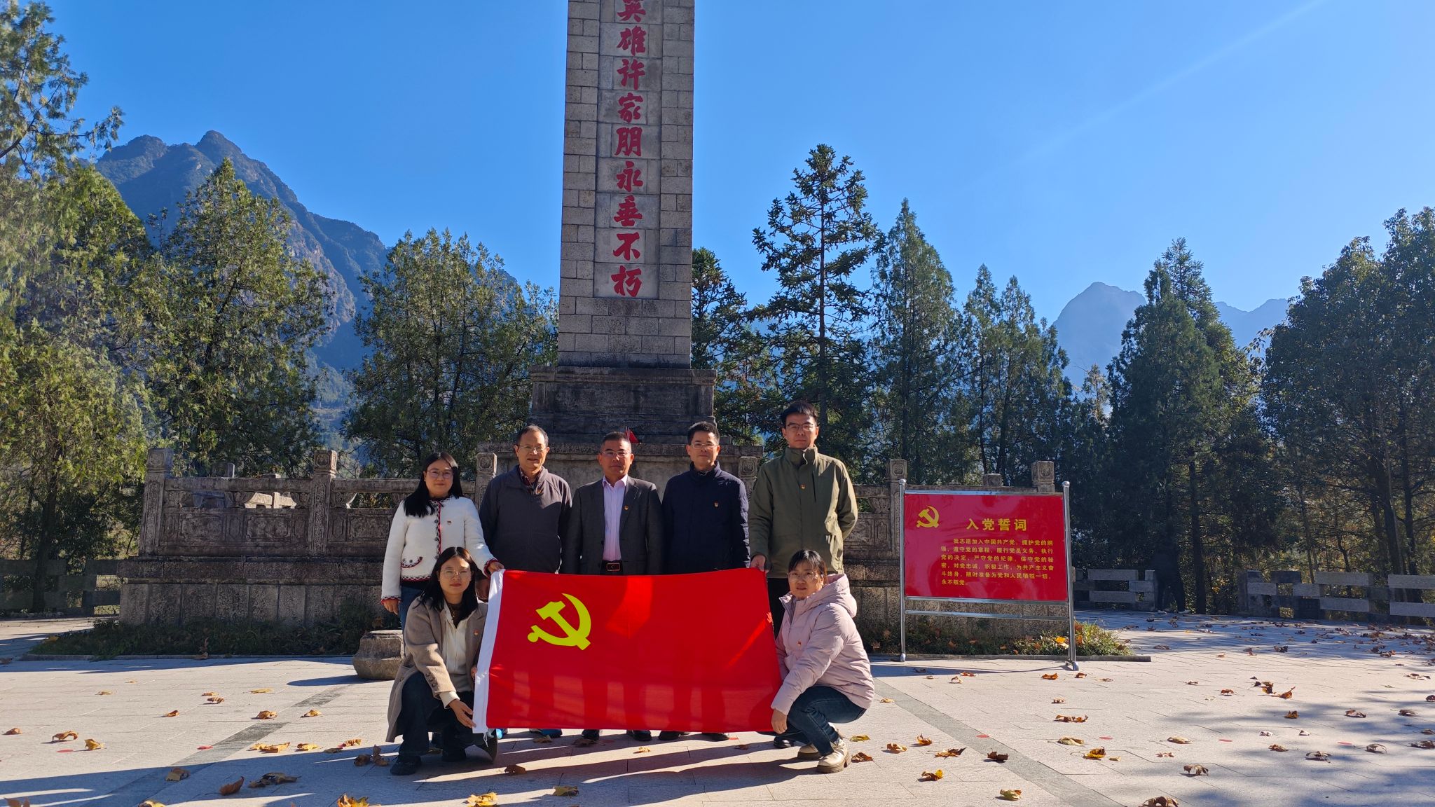 19日下午,全体人员抵达庄严肃穆的许家朋烈士陵园。在巍然矗立的纪念碑前,同志们整齐列队、肃立默哀,深切缅怀革命先烈的丰功伟绩。通过瞻仰纪念碑、观看事迹展陈,大家深入了解了英雄们的奋斗历程,在追思中感悟信仰力量。全体党员面向党旗庄严宣誓,重温入党誓词,进一步坚定了传承红色基因、践行初心使命的理想信念。