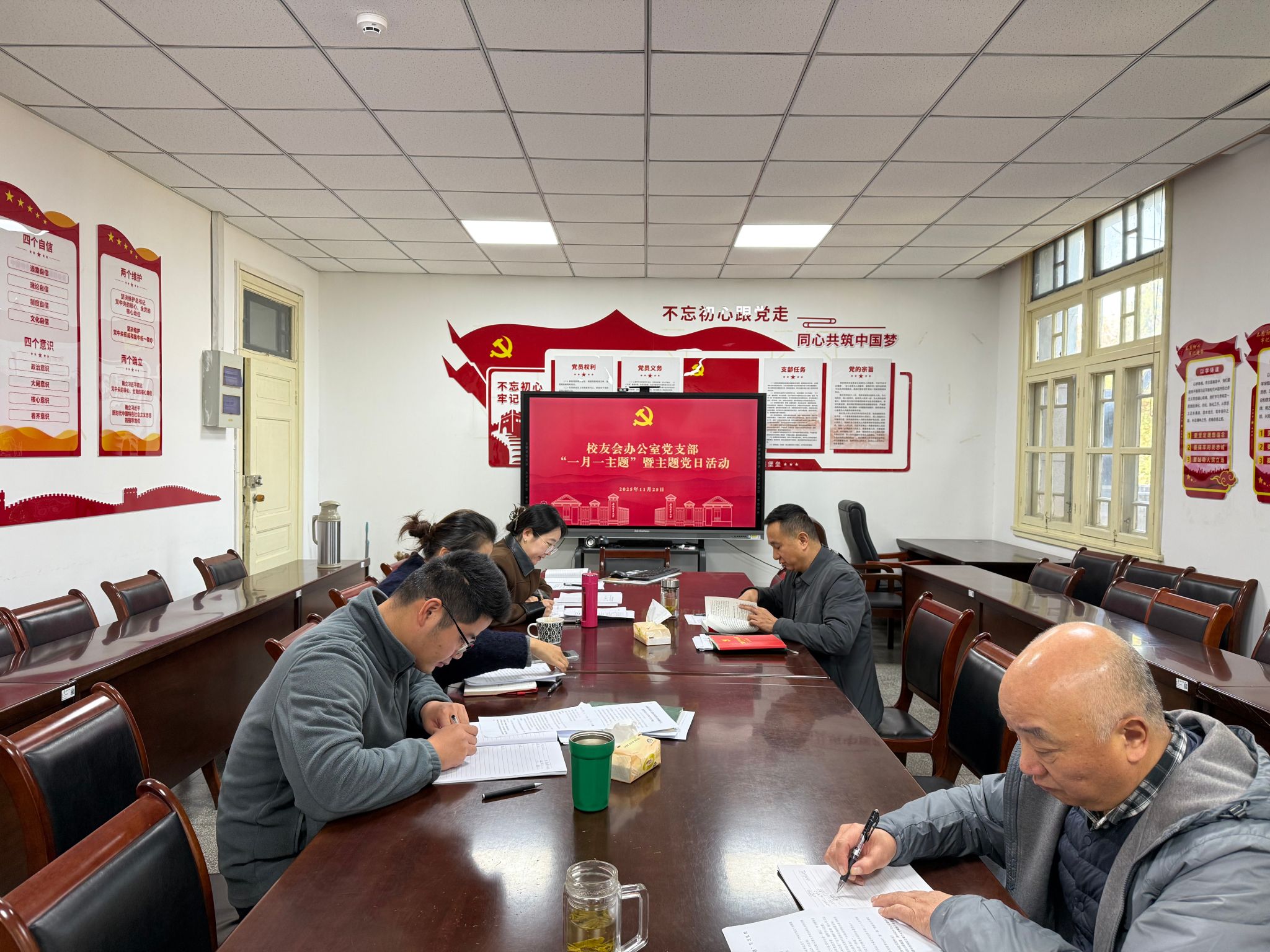 11月25日上午,校友会办公室党支部召开“一月一主题”学习研讨会,会议由党支部书记刘海涛主持,全体党员参加会议。