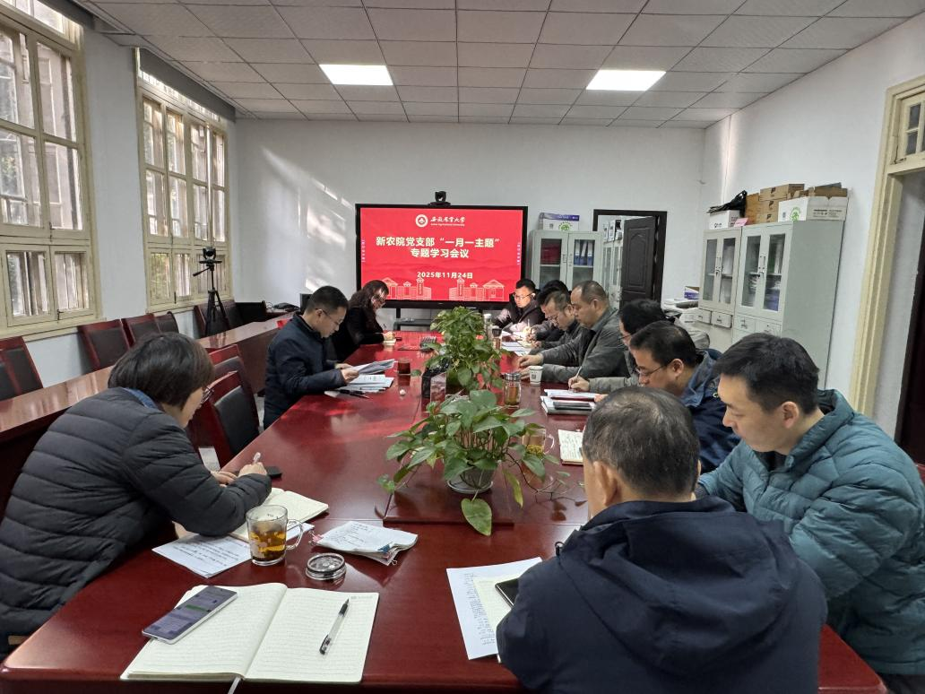 11 月 24 日上午,新农院党支部召开“一月一主题”专题学习研讨会,会议由党支部书记谈应权主持。